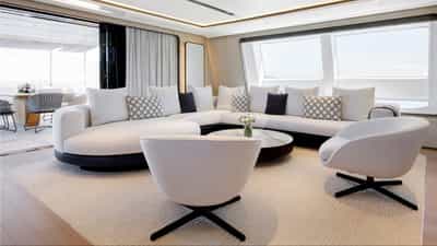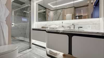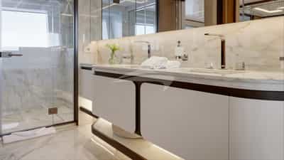 O PERLA BIANCA foi projetado para acomodar confortavelmente até 10 hóspedes charter em 5 suítes.