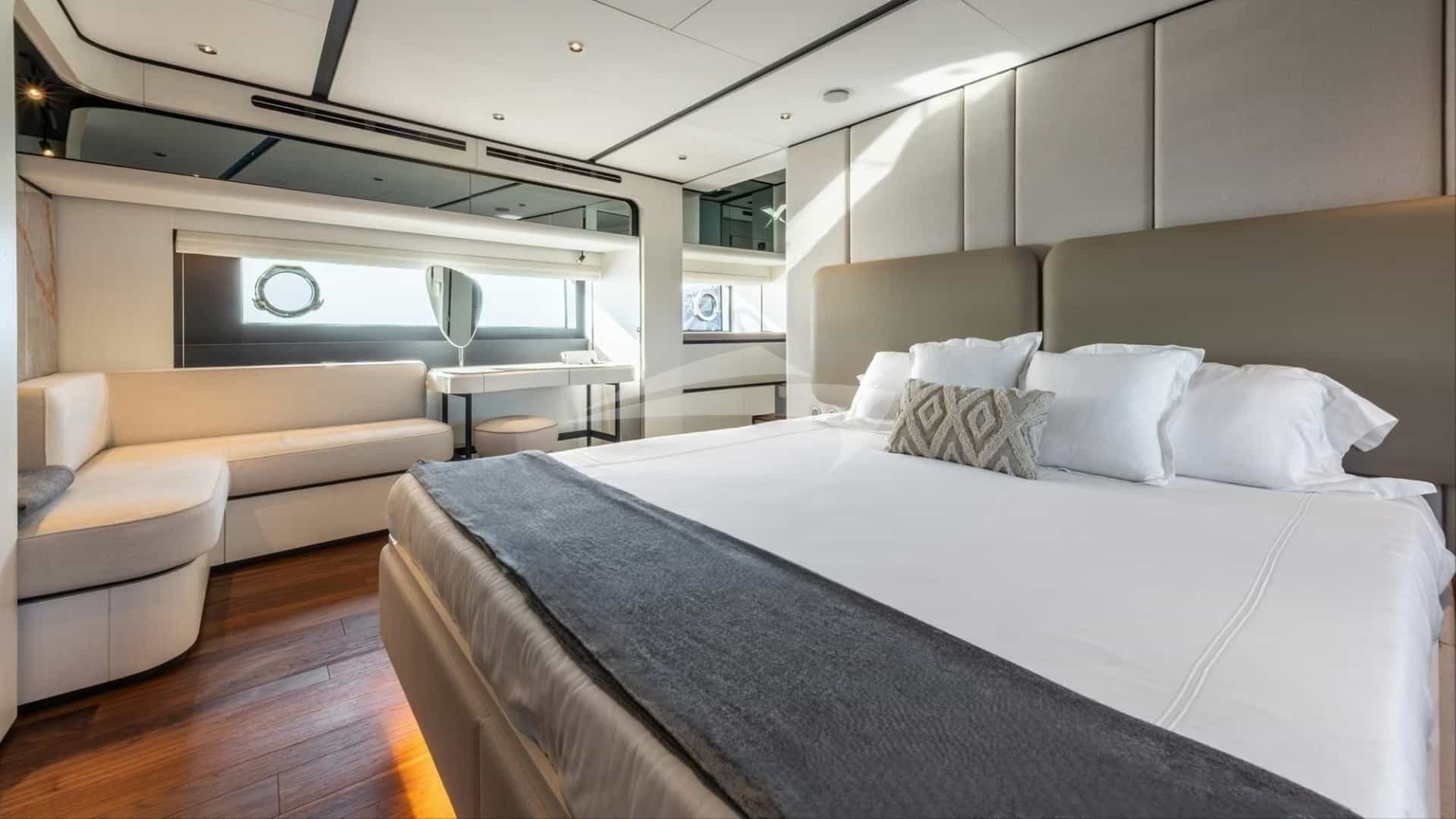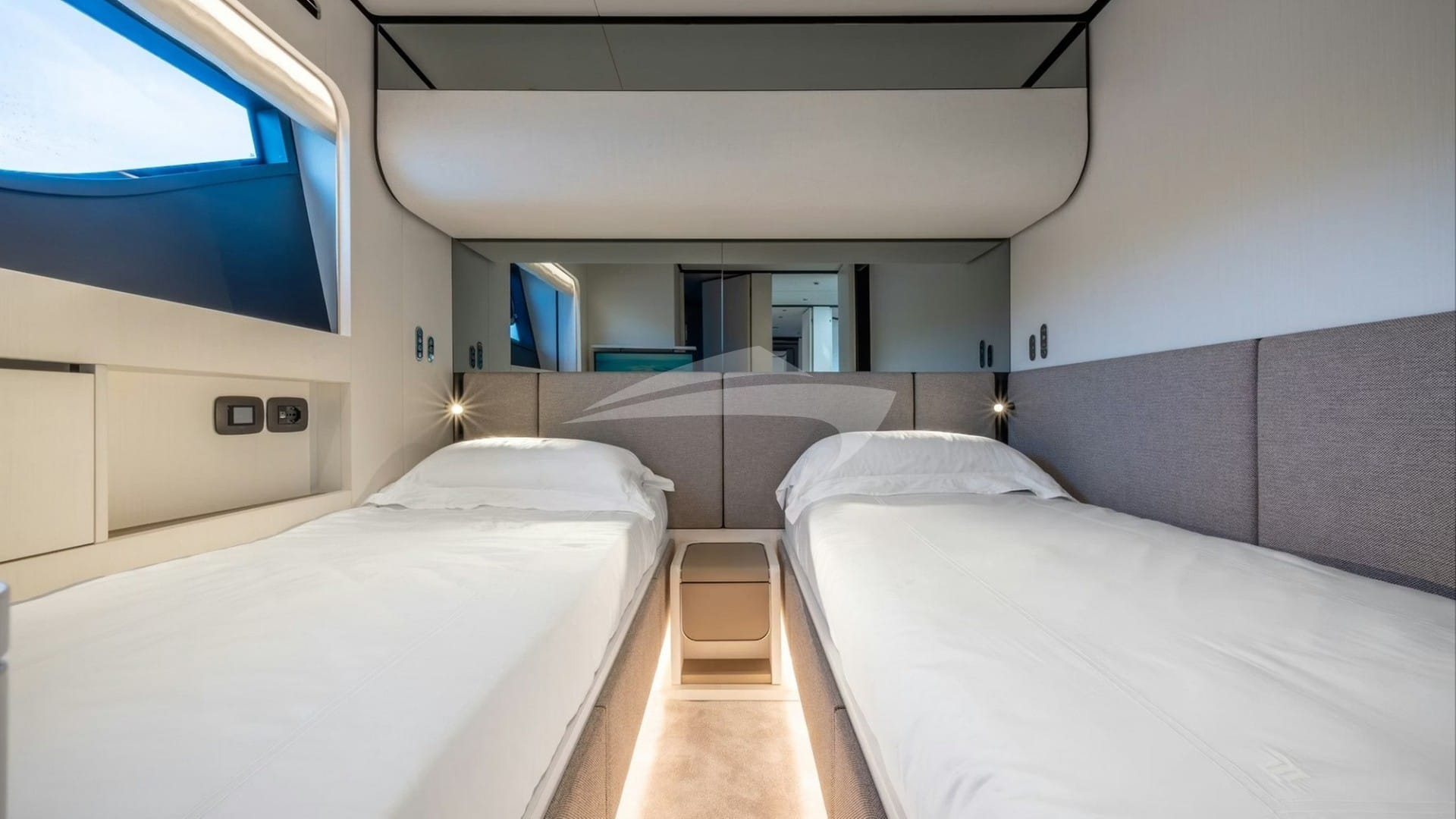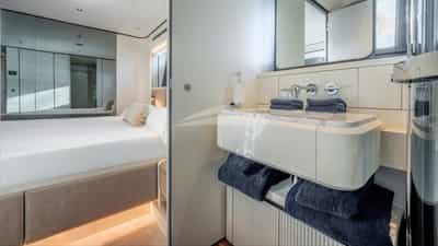 As cabines de hóspedes compreendem uma suíte principal com cama king size e banheiro privativo e 3 suítes VIP com cama king size e banheiro privativo.