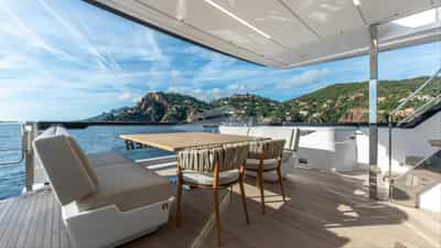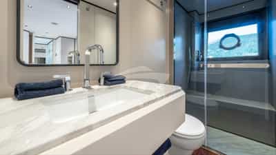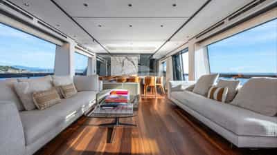 As comodidades a bordo para os hóspedes charter incluem ar condicionado, cinema, jacuzzi no convés, TV via satélite, estabilizadores e Wi-Fi.