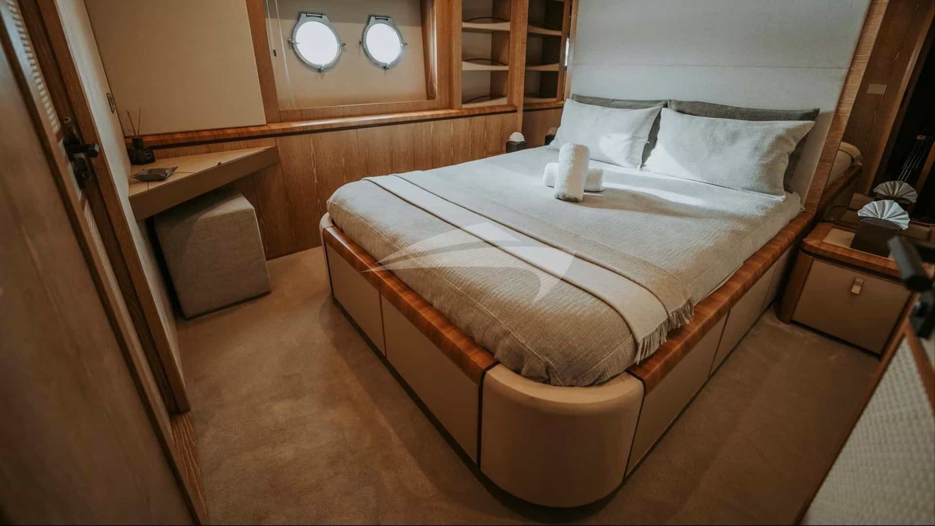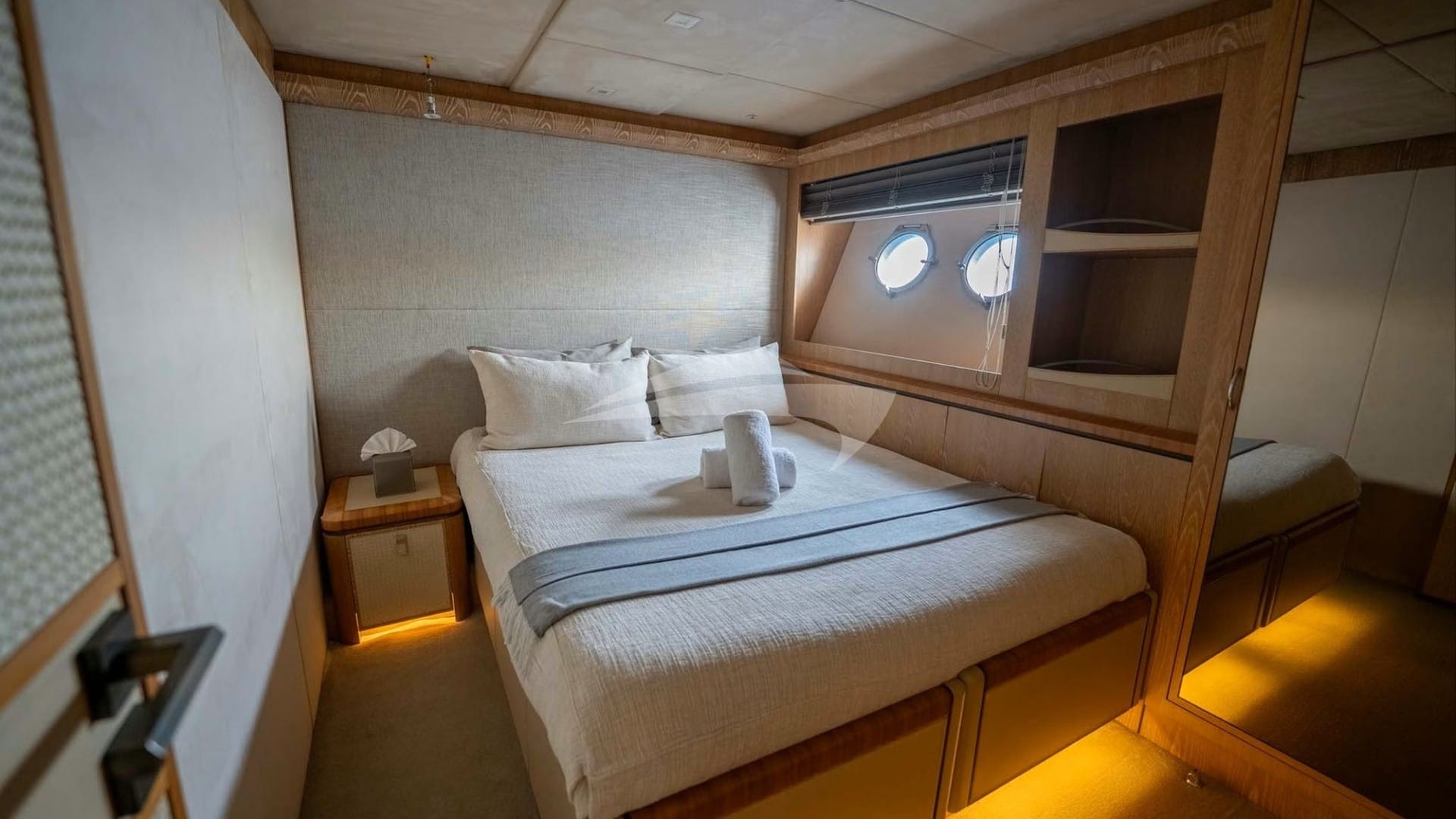 As cabines de hóspedes compreendem uma suíte principal com cama king size e banheiro privativo, uma suíte VIP com cama king size e banheiro privativo, uma cabine com cama de casal e banheiro privativo e uma cabine com cama de solteiro e banheiro privativo.