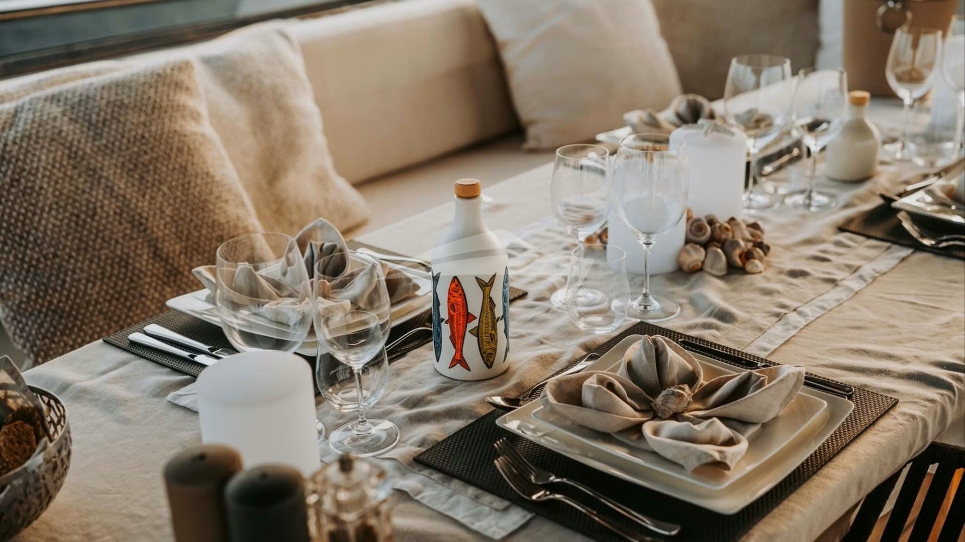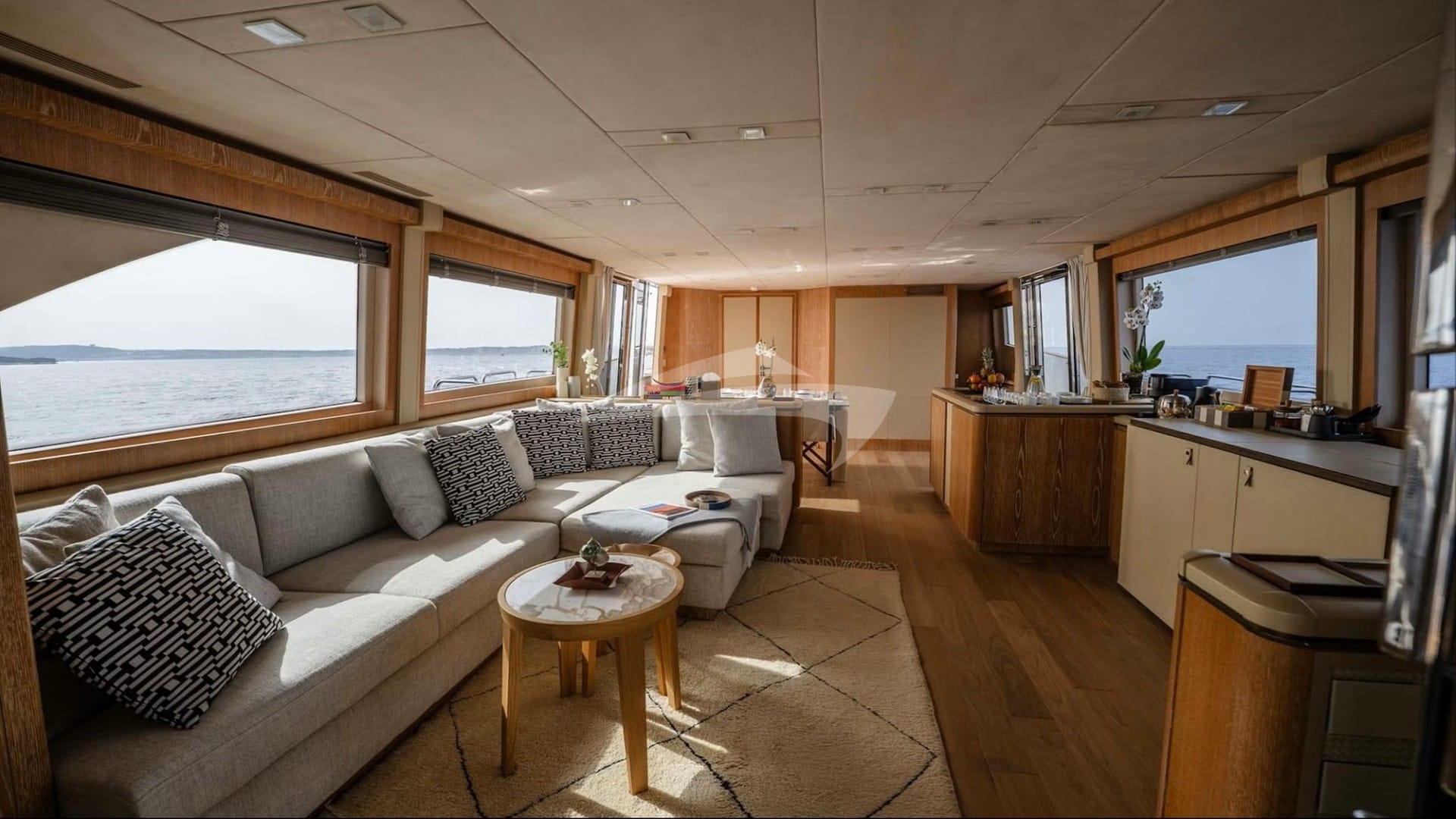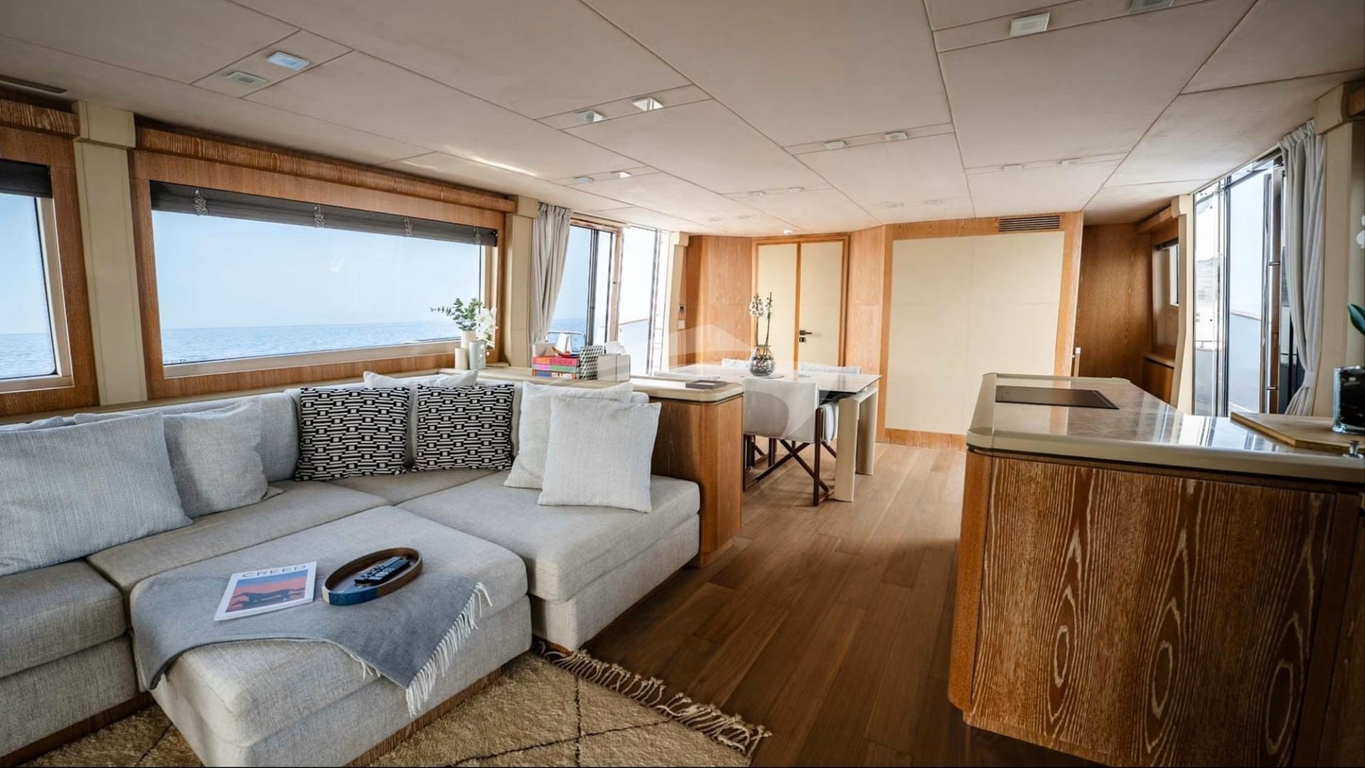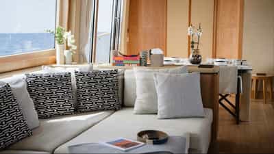 As comodidades a bordo para os hóspedes charter incluem ar condicionado e Wi-Fi.