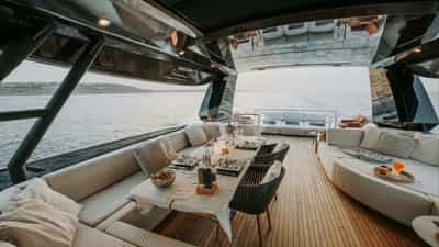 O luxuoso iate a motor VENUS foi construído pela Monte Carlo Yachts e entregue ao seu proprietário em 2013. Posteriormente, ela passou por uma reforma em 2023.