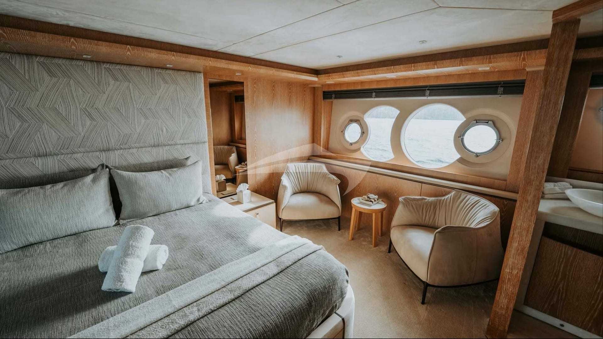 O VENUS foi projetado para acomodar confortavelmente até 8 hóspedes charter em 4 suítes.