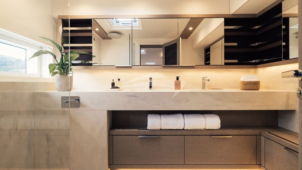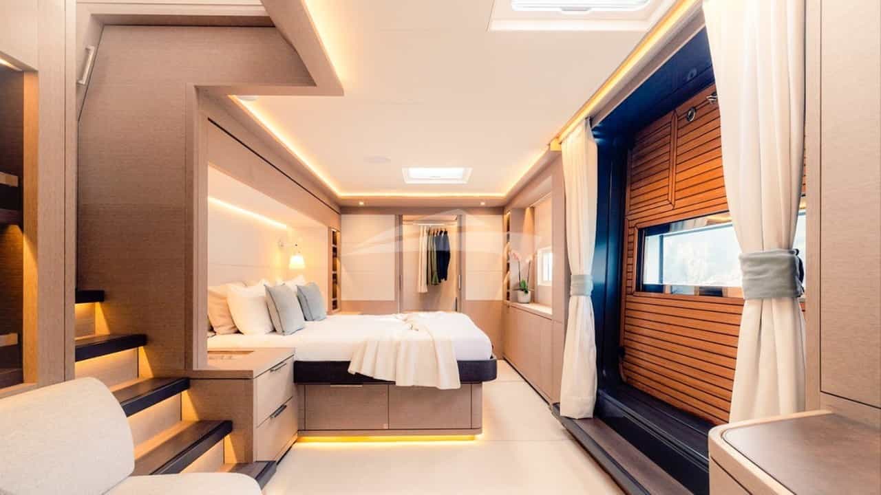O REVA NUI foi projetado para acomodar confortavelmente até 8 hóspedes charter em 4 suítes.