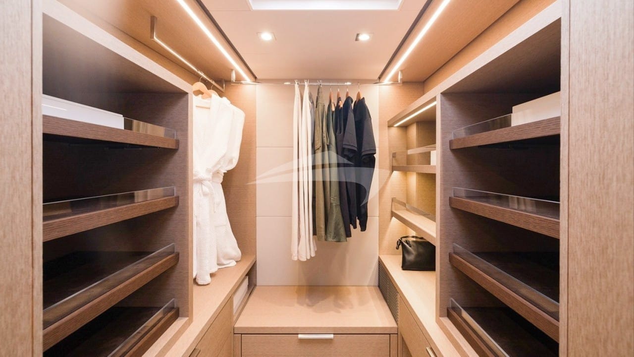 As comodidades a bordo para os hóspedes charter incluem ar condicionado, cafeteira, chuveiro externo, equipamento de pesca leve, assentos no convés de proa, console de jogos, máquina de fazer gelo, sistema de áudio interno, jacuzzi no convés, sistema de áudio externo, protetores solares, plataforma de natação, TV em todas as cabines, salão de TV e Wi-Fi.
