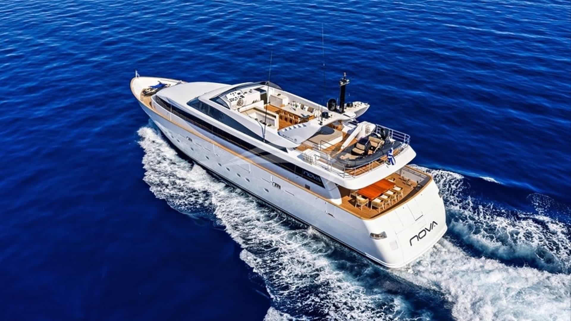 O luxuoso iate a motor NOVA foi construído pela Baglietto e entregue ao seu proprietário em 1998. Posteriormente, ela passou por uma reforma em 2025.