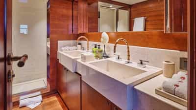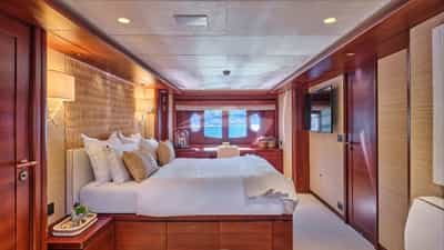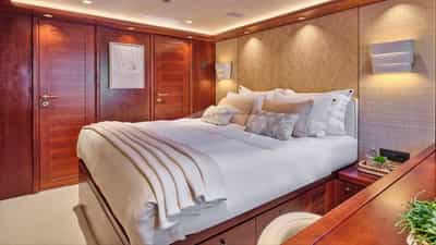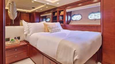 As cabines de hóspedes incluem uma suíte principal com cama king size e banheiro privativo, 2 suítes VIP com cama king size e banheiro privativo, uma cabine com cama de casal e banheiro privativo e uma cabine com cama de solteiro e banheiro privativo.
