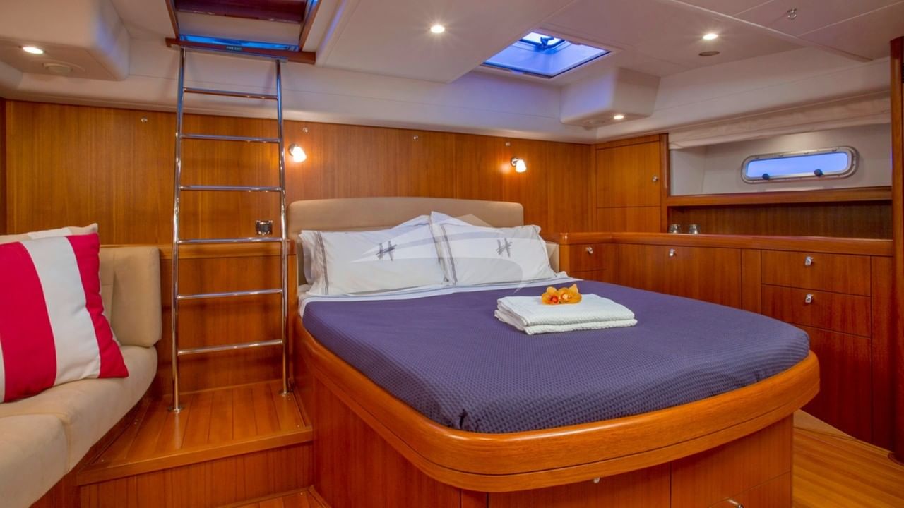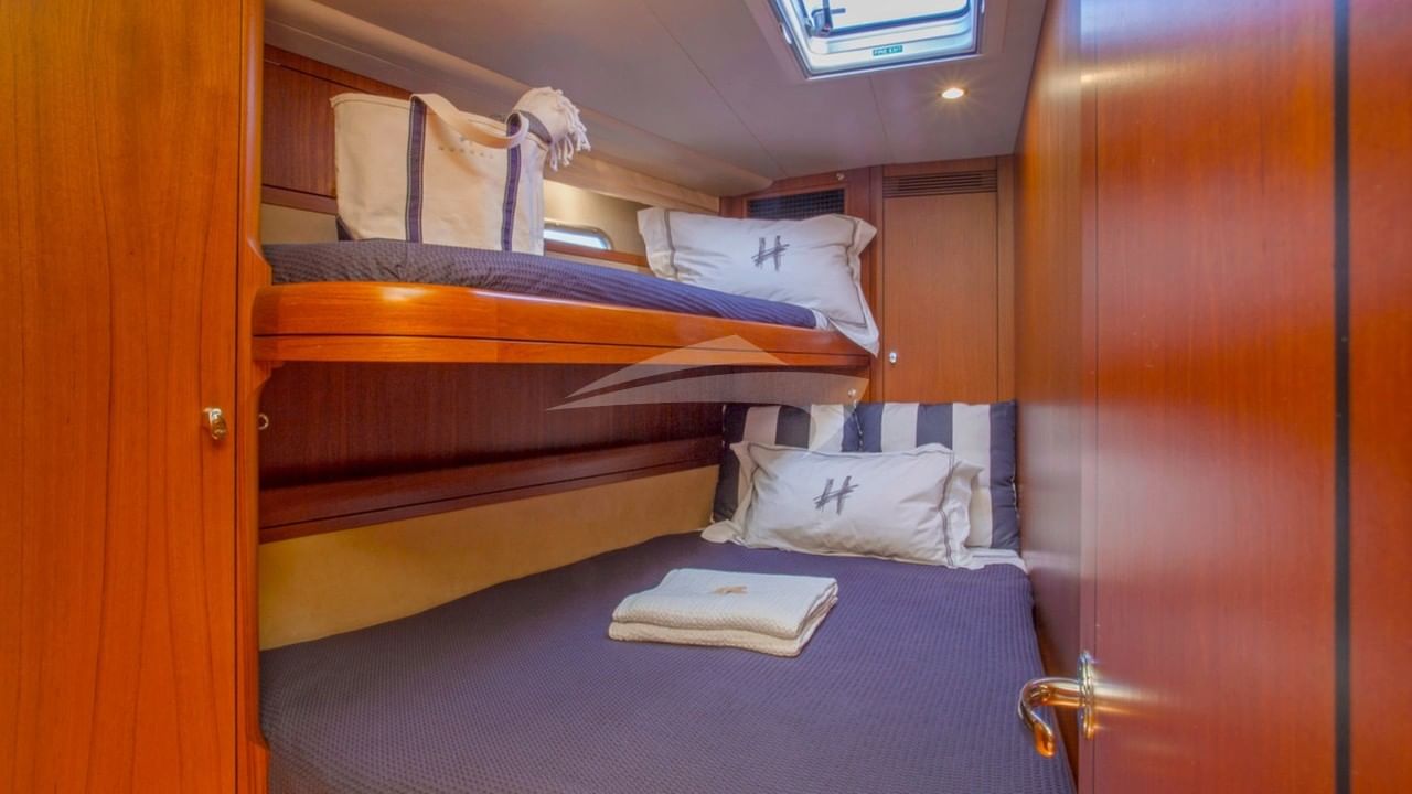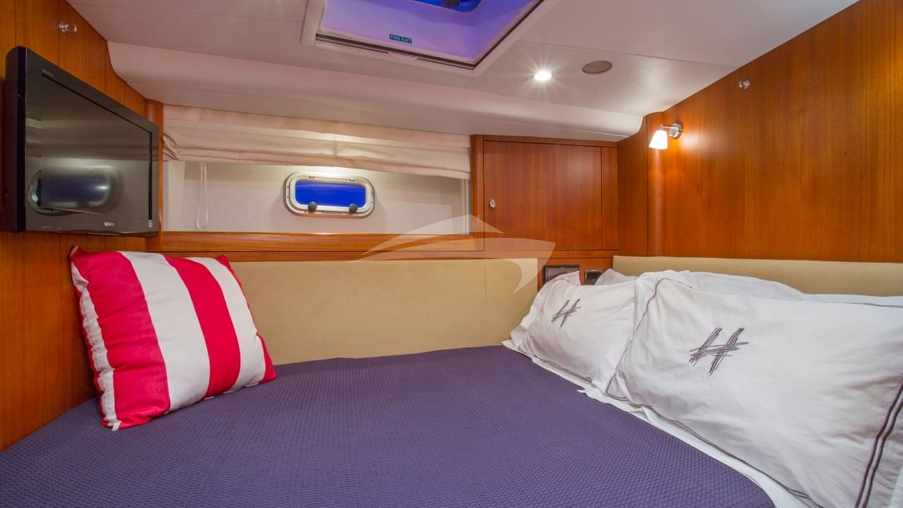 O HURRAH pode acomodar 6 pessoas em 3 cabines constituídas por uma suite primária com uma cama de casal e casa de banho privativa localizada na popa, uma cabine com uma cama de casal e casa de banho privativa e uma cabine com uma cama de solteiro e banheiro privativo.