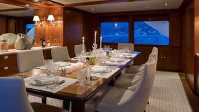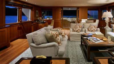 As comodidades a bordo para os hóspedes charter incluem ar-condicionado, churrasqueira, clube de praia, cinema, equipamento de pesca leve, console de jogos, dock para iPod, jacuzzi no convés, servidor de mídia de filmes, comunicações via satélite, TV via satélite, scooters, estabilizadores ancorados e Wi-Fi.