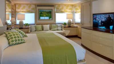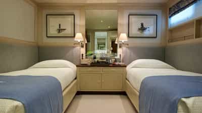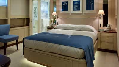 As cabines de hóspedes compreendem uma suíte principal com cama king size e banheiro privativo localizado no convés principal, 3 cabines com cama queen size e banheiro privativo, 2 cabines com 2 camas de solteiro e 2 camas pullman e banheiro privativo e uma cabine com uma cama de solteiro, uma cama pullman e banheiro privativo.