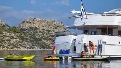 Seu aluguel de luxo a bordo do iate a motor ANCALLIA será administrado pela tripulação de 9 pessoas, incluindo o capitão.