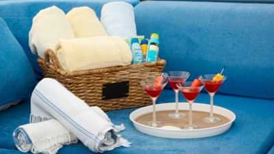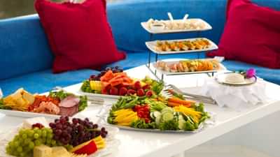 As comodidades a bordo incluem ar condicionado, churrasqueira, chuveiro externo, equipamento de pesca leve, sistema de áudio interno, comunicações via satélite, estabilizadores ancorados, submarino, plataforma de natação e salão de TV.