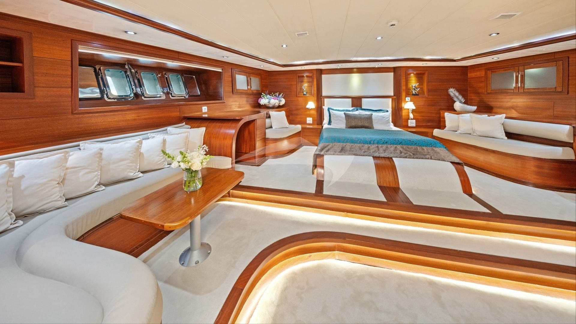 O ALESSANDRO I foi projetado para acomodar confortavelmente até 10 hóspedes fretados em 5 suítes.