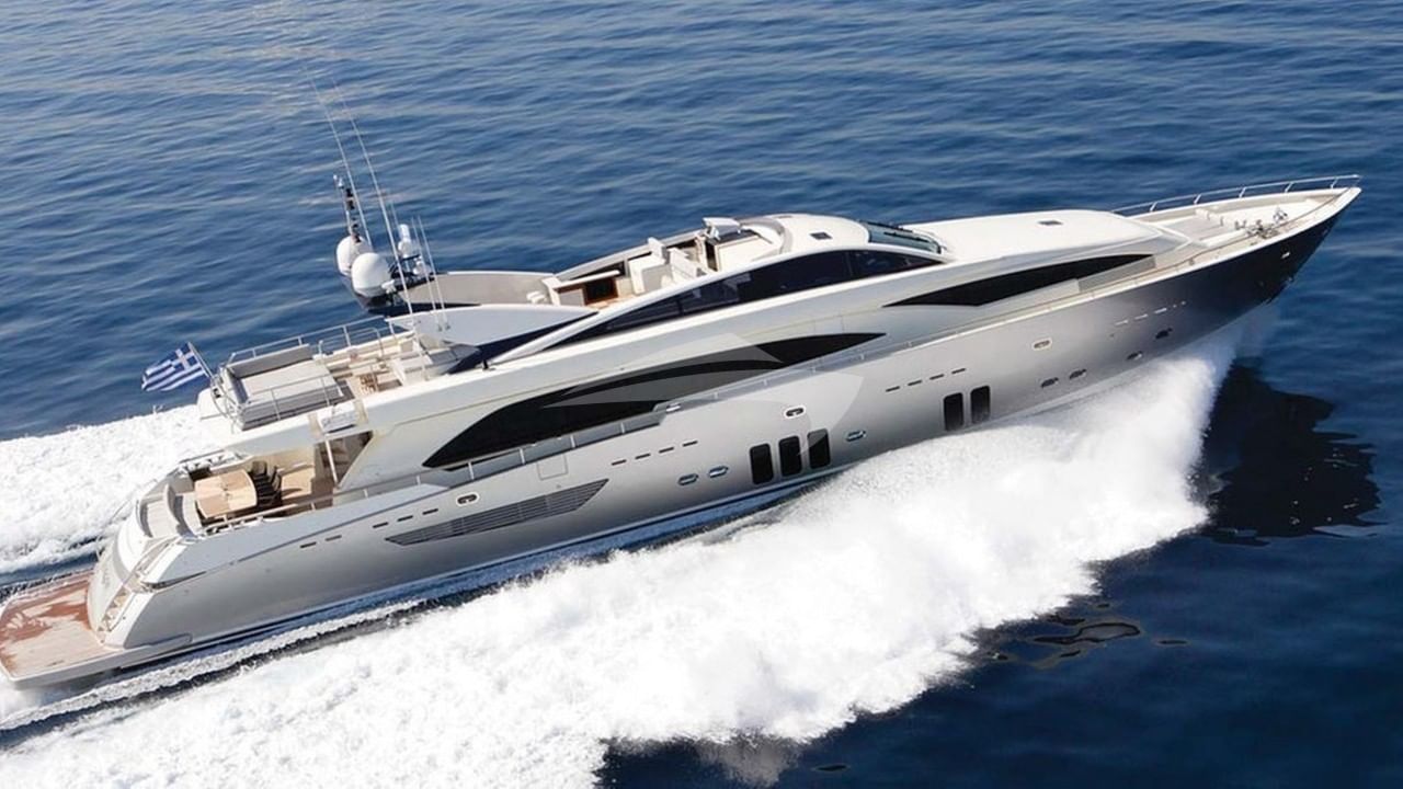 O DRAGON de 121 pés/36,9 m foi construído com um casco grp e é alimentado por 2 X 2,735 Hp cada MTU 2 X com uma velocidade de cruzeiro de 26 nós.