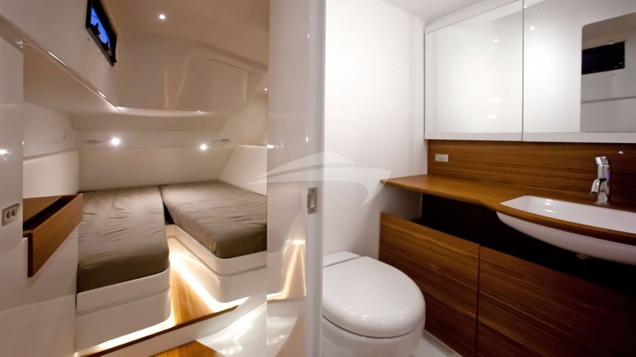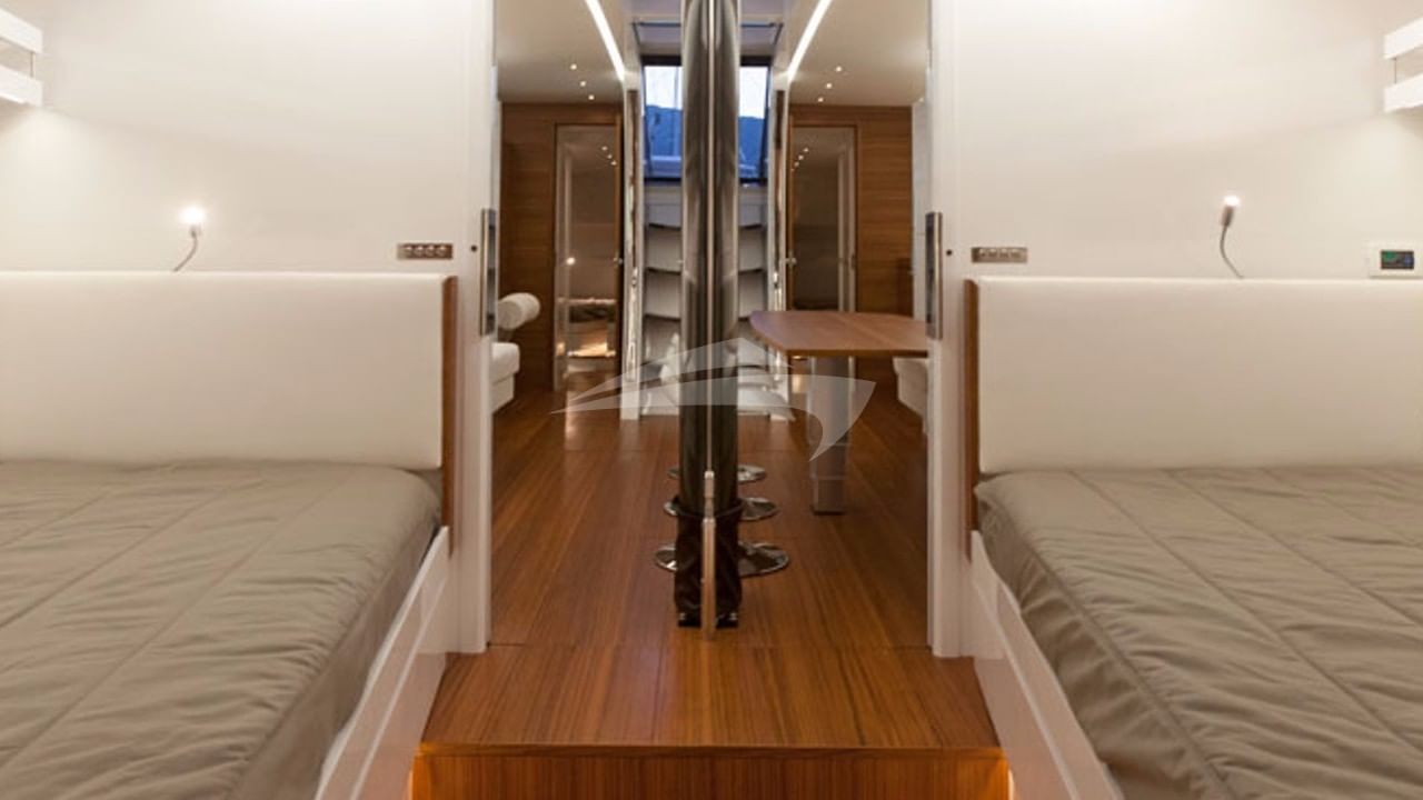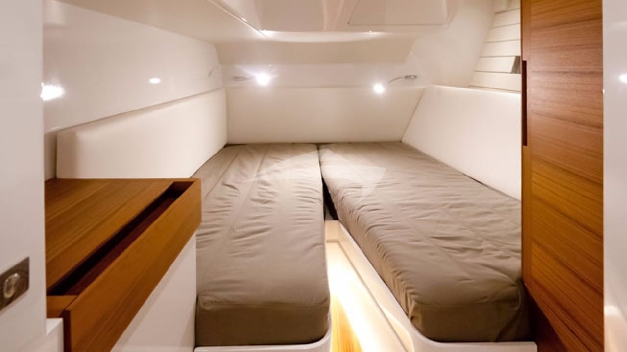 O SUD pode acomodar 6 pessoas em 3 cabines constituídas por uma suíte principal com cama de casal e banheiro privativo e 2 cabines com cama de casal e banheiro privativo.