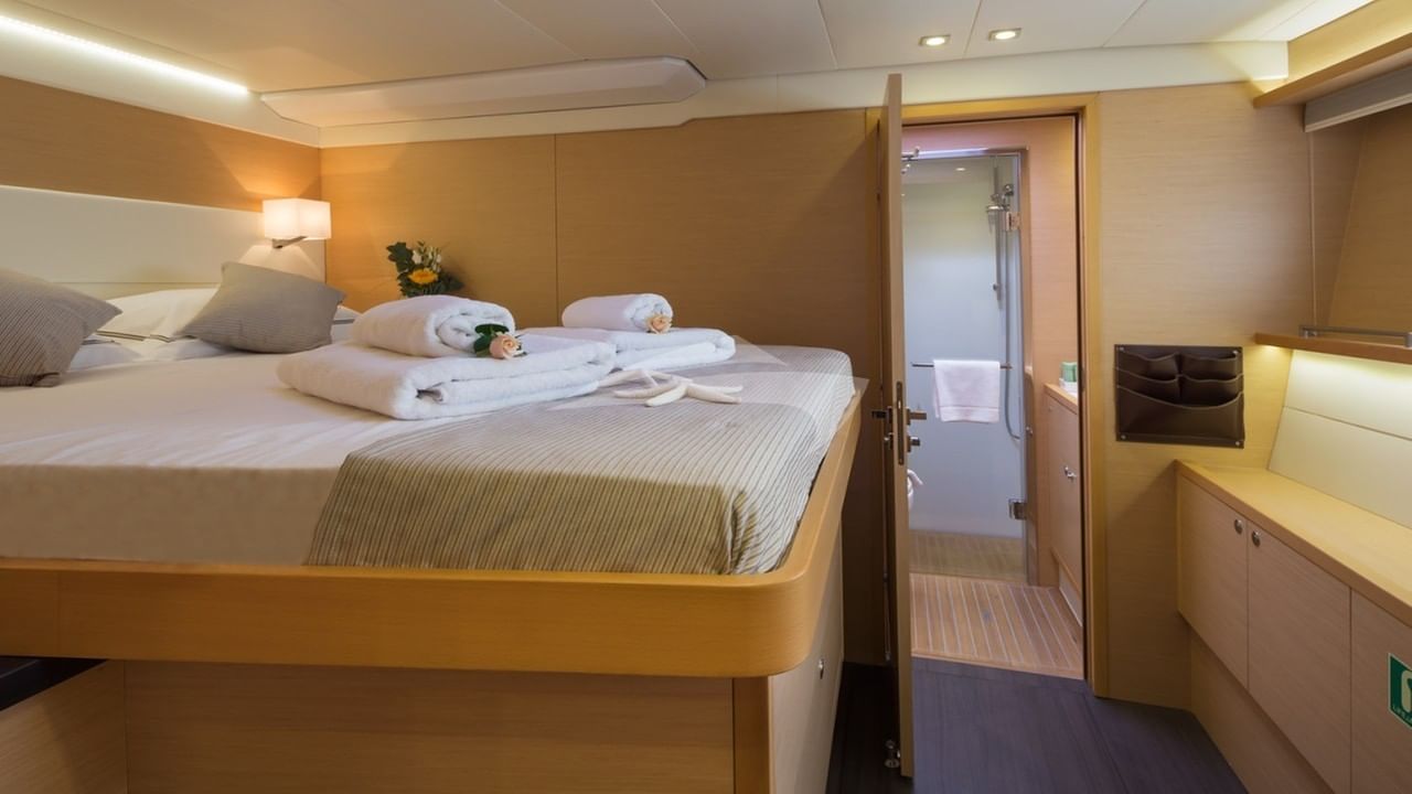 SELENE pode acomodar 10 hóspedes dormindo a bordo em 5 cabines.