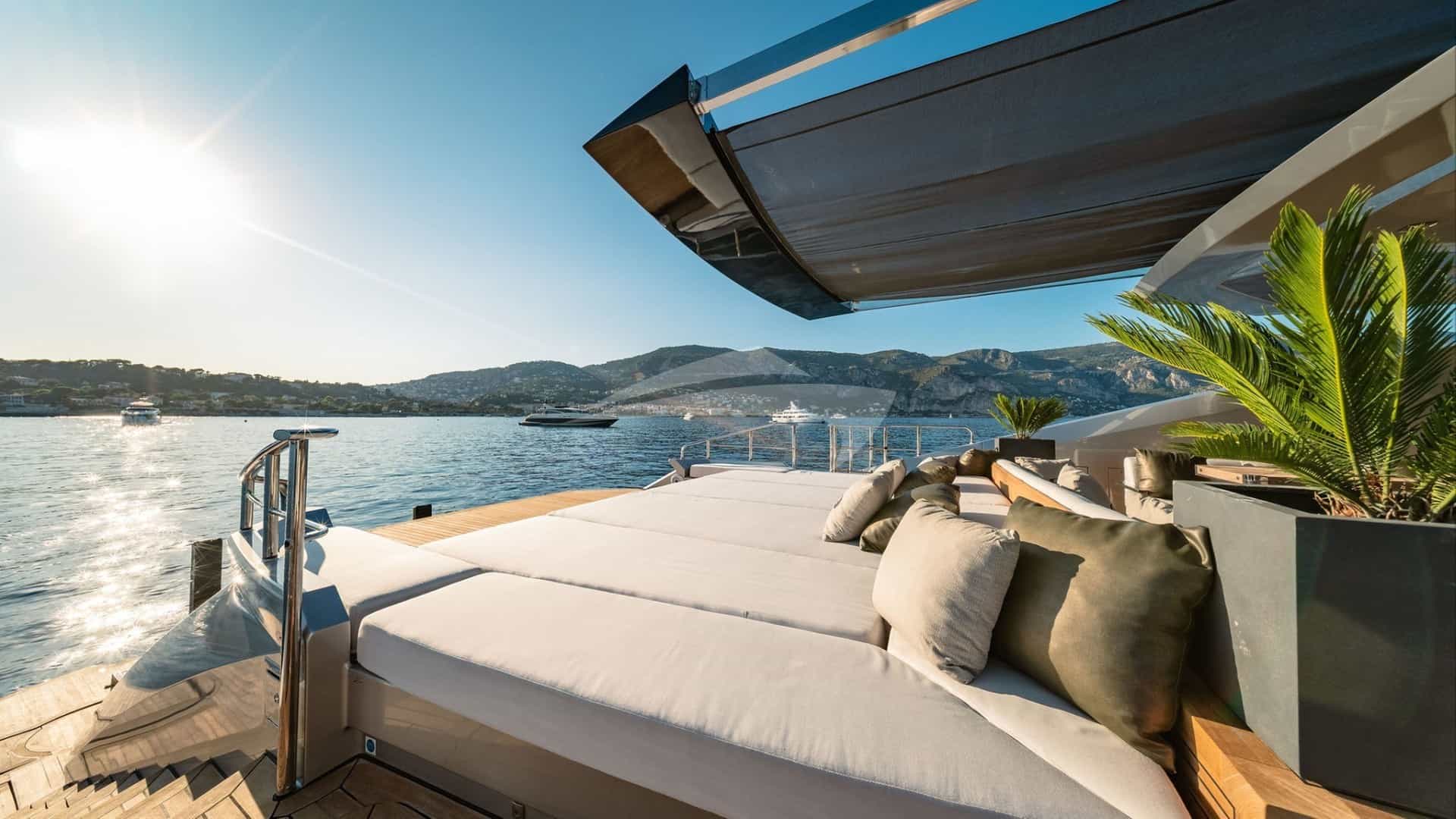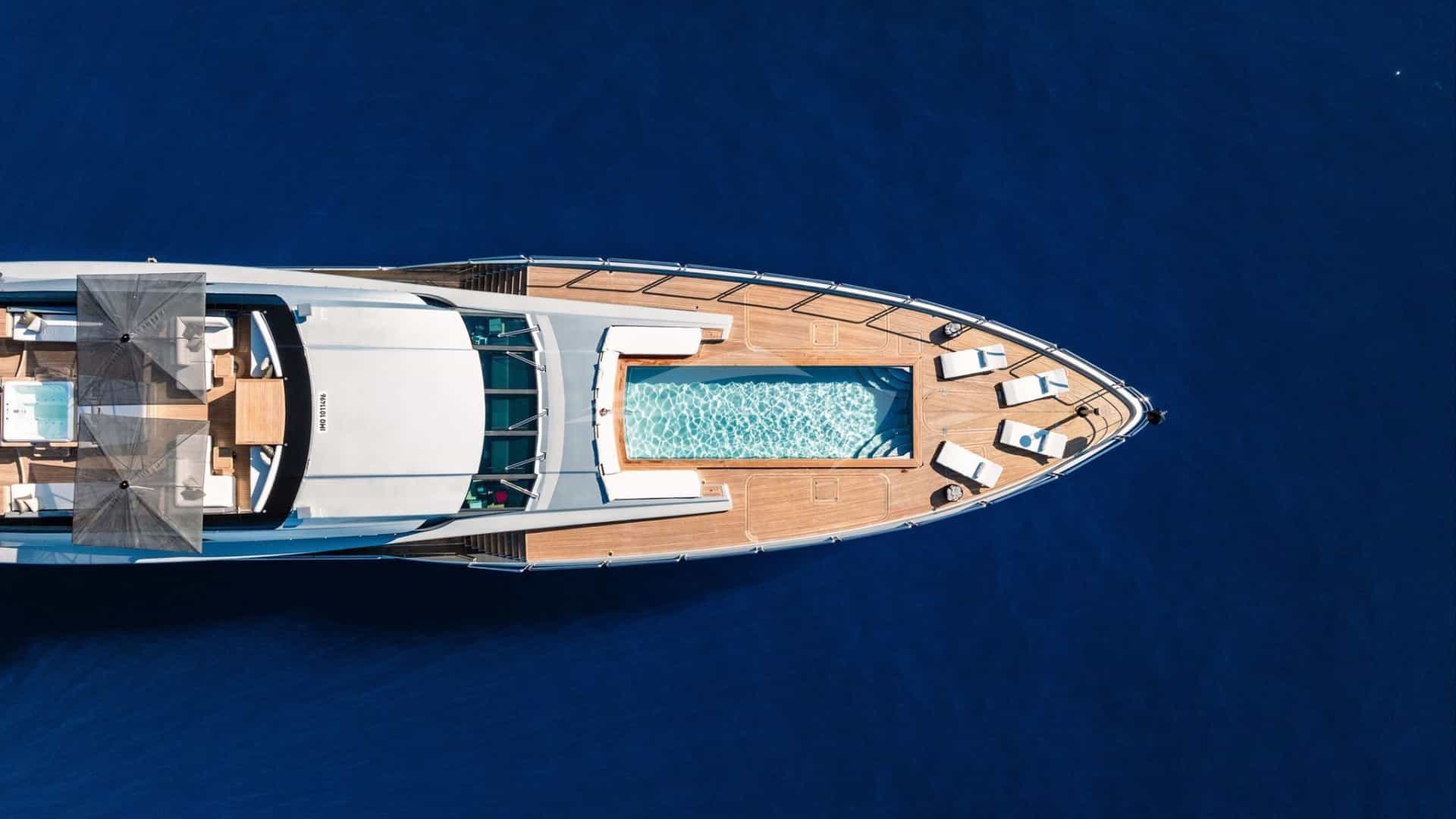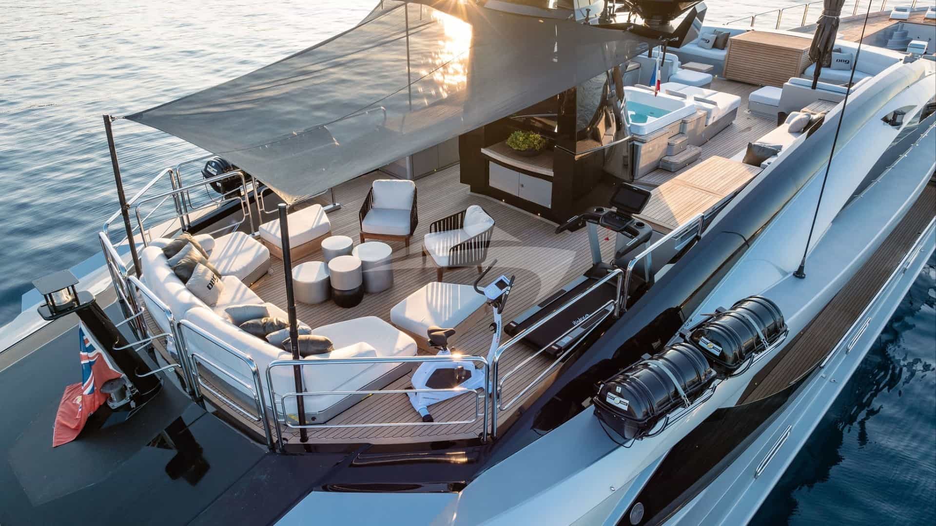 As comodidades a bordo para os hóspedes charter incluem ar condicionado, churrasqueira, equipamento de ginástica, equipamento de pesca leve, academia, jacuzzi no convés, sistema de áudio externo, estabilizadores ancorados, almofadas de sol, espreguiçadeiras, plataforma de natação, piscina, TV em todas as cabines, TV externa e Wi-Fi.