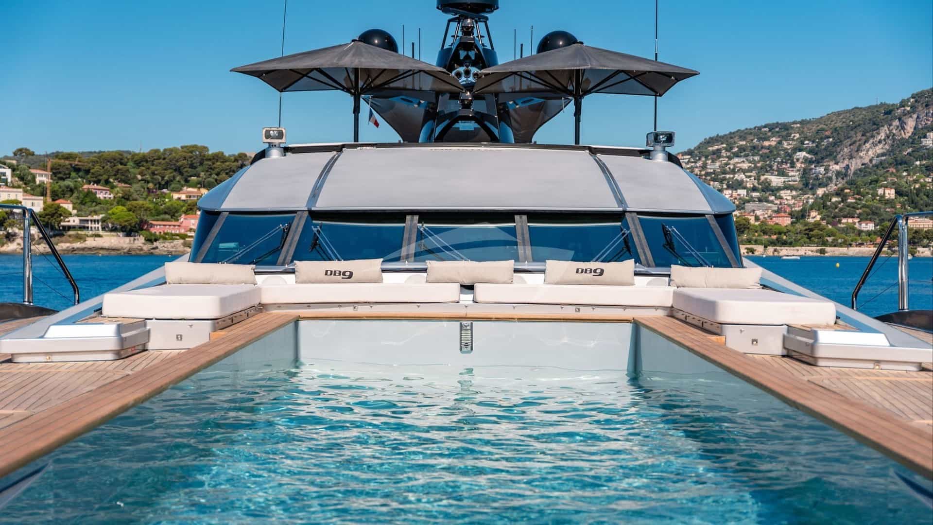O luxuoso iate a motor DB9, anteriormente chamado de AURA, foi construído por Palmer Johnson e entregue ao seu proprietário em 2010. Posteriormente, ela passou por uma reforma em 2025.