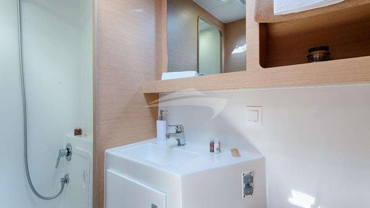 As cabines de hóspedes incluem uma suíte principal com cama de casal e banheiro privativo e 3 cabines com cama de casal e banheiro privativo.