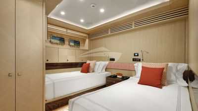Гостевые каюты включают в себя основной люкс с двуспальной кроватью, 3 каюты с двуспальной кроватью и 2 каюты с двумя односпальными кроватями.