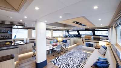 Удобства на борту для чартерных гостей включают кондиционер, барбекю, кофеварку, душ на открытом воздухе, льдогенератор, внутреннюю аудиосистему, док-станцию для iPod, бар на открытом воздухе, спутниковое телевидение, солярий, телевизор на открытом воздухе, ТВ-салон, опреснитель воды и Wi-Fi.