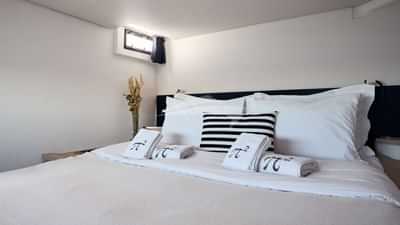 Гостевые каюты состоят из основного люкса с кроватью размера «queen-size» и собственной ванной комнатой, а также 4 каюты с кроватью размера «queen-size» и собственной ванной комнатой.