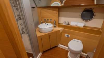 Удобства на борту для чартерных гостей включают кондиционер, барбекю, душ на открытом воздухе, аудиосистему в помещении, док-станцию для iPod, ТВ-салон и Wi-Fi.