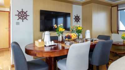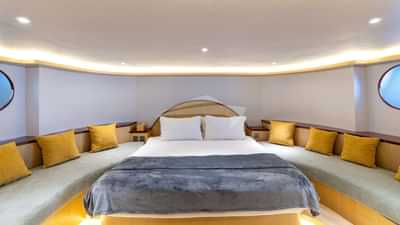 Гостевые каюты включают в себя основной люкс с двуспальной кроватью и собственной ванной комнатой, 2 каюты с двуспальной кроватью и ванной комнатой и 4 каюты с двумя односпальными кроватями и собственной ванной комнатой.