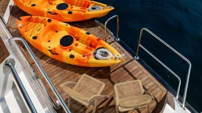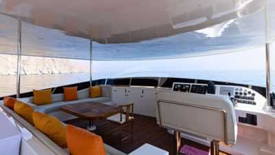 Удобства на борту для чартерных гостей включают кондиционер, душ на открытом воздухе, аудиосистему в помещении, док-станцию для iPod, спутниковое телевидение, ТВ-салон и Wi-Fi.