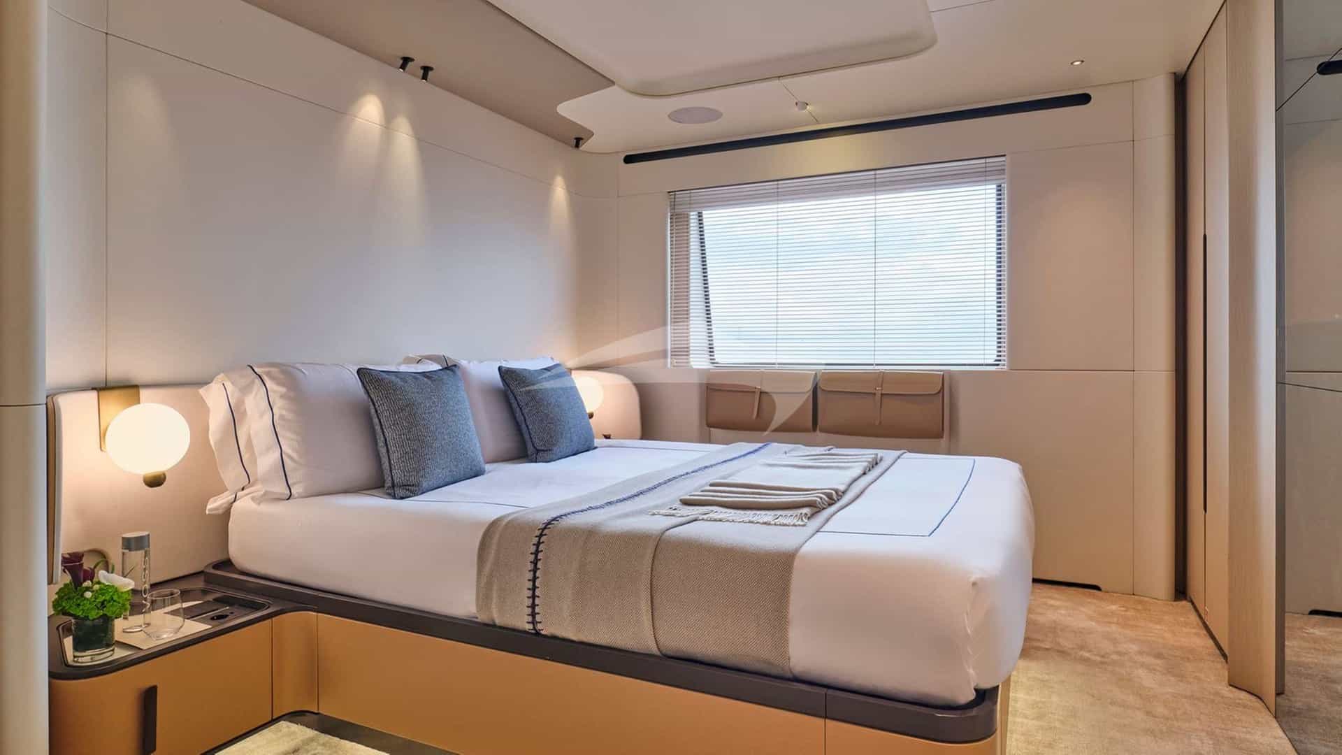 Гостевые каюты состоят из основного люкса с кроватью размера «king-size» и собственной ванной комнатой, а также 3 каюты с кроватью размера «queen-size» и собственной ванной комнатой.