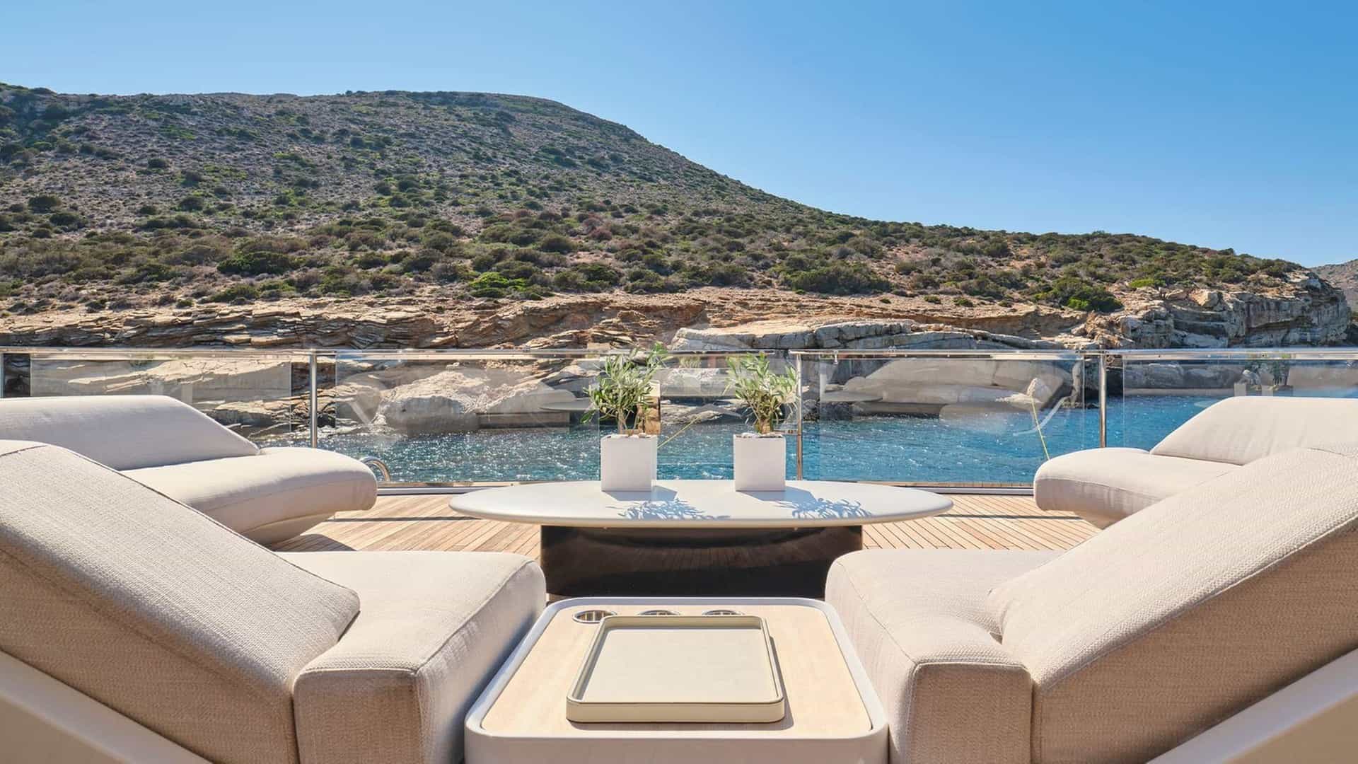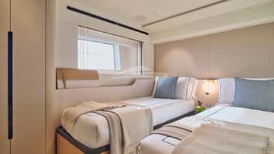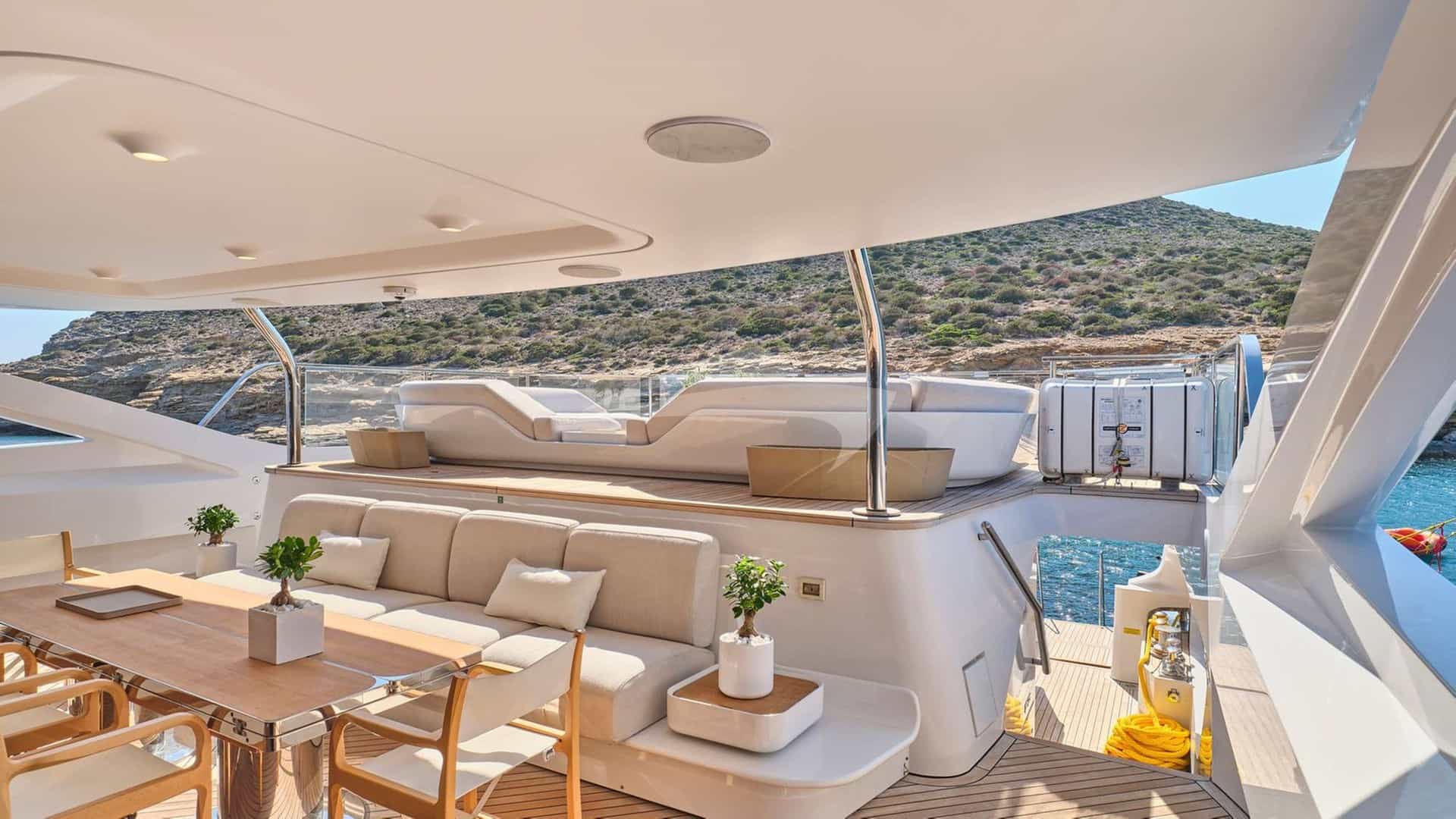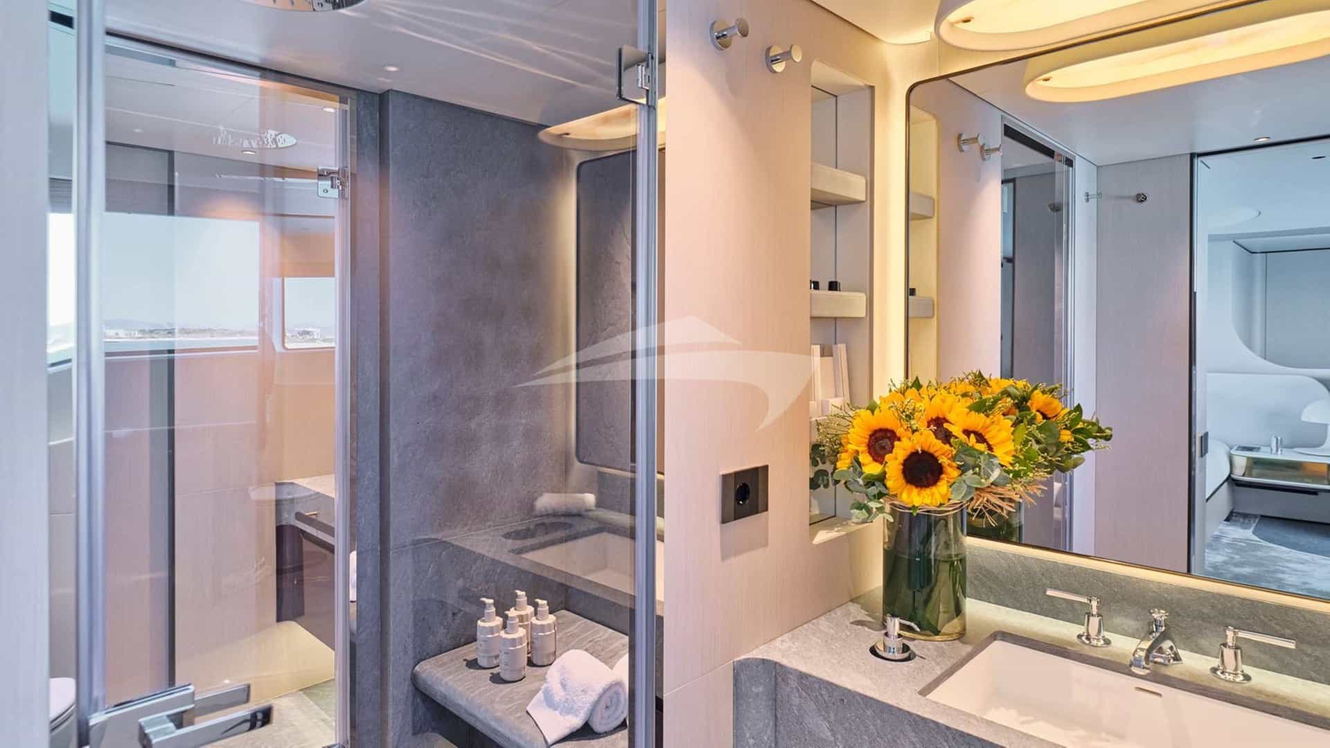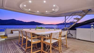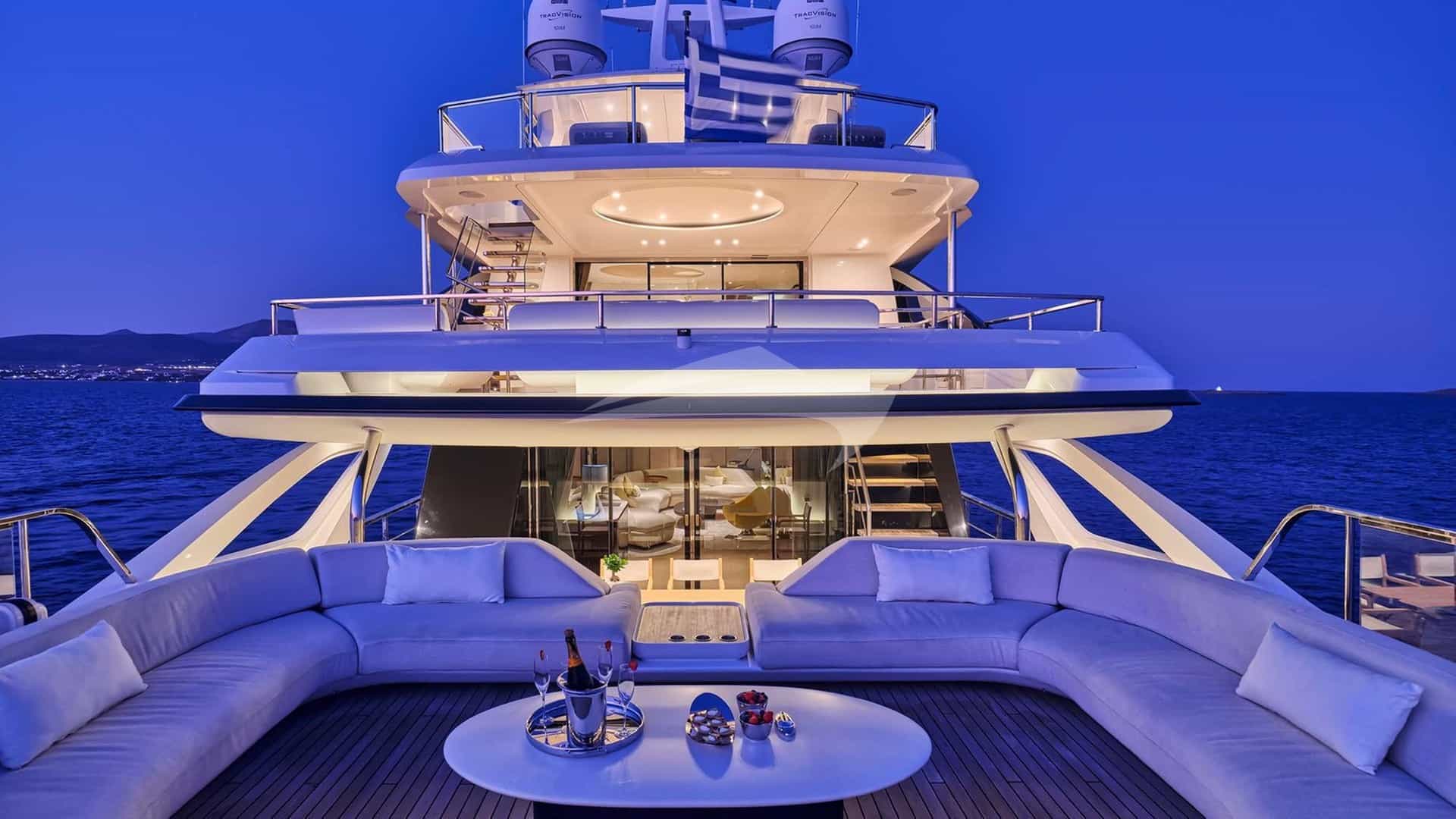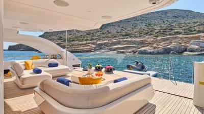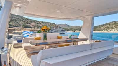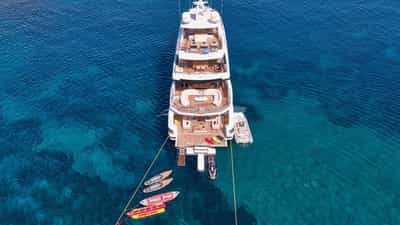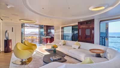 Удобства на борту для чартерных гостей включают кондиционер, джакузи на палубе, стабилизаторы на якоре, платформу для купания, телевизионный салон и Wi-Fi.