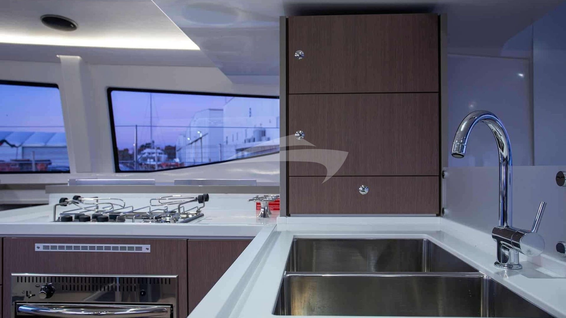 Удобства на борту для чартерных гостей включают кондиционер, барбекю, душ на открытом воздухе, аудиосистему в помещении, док-станцию для iPod, платформу для купания, телевизионный салон и Wi-Fi.