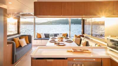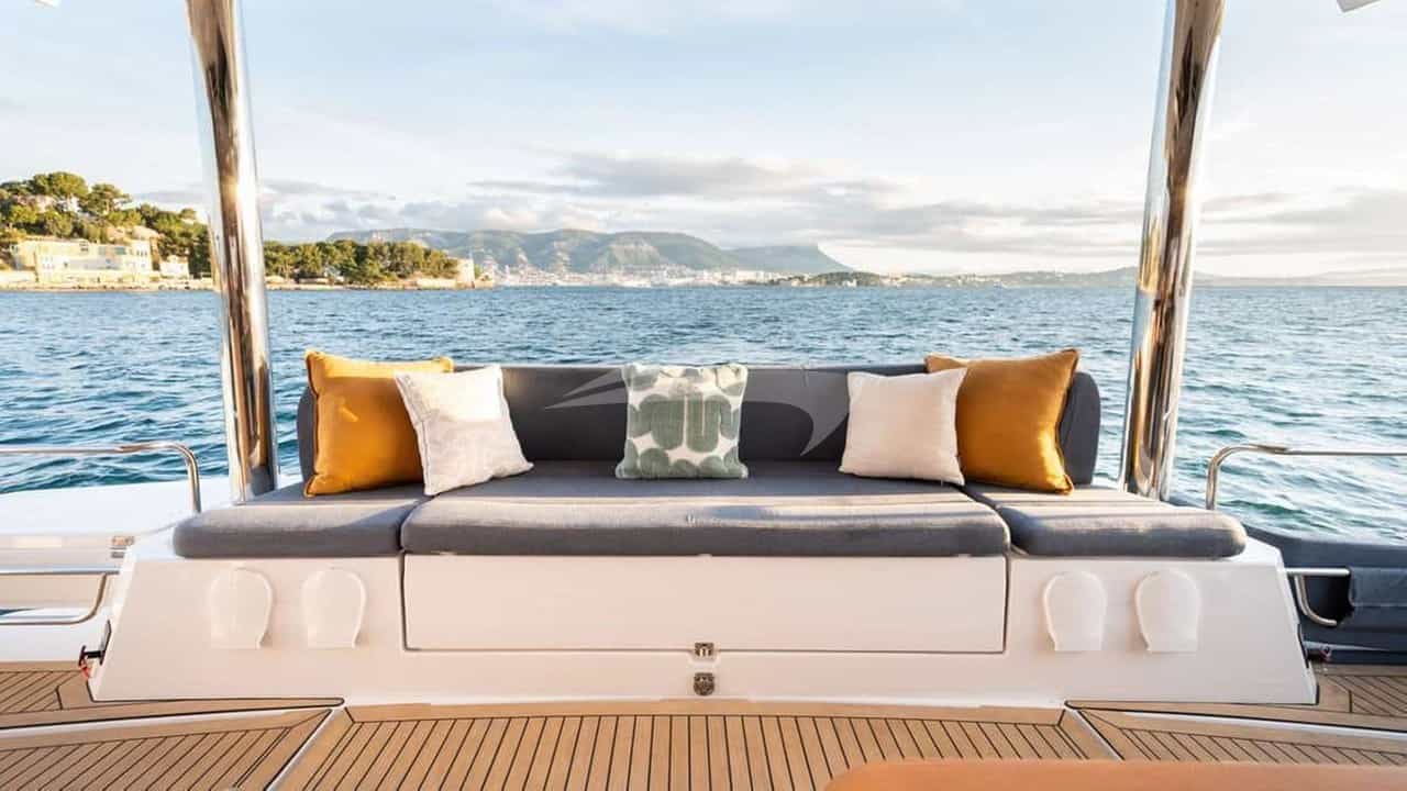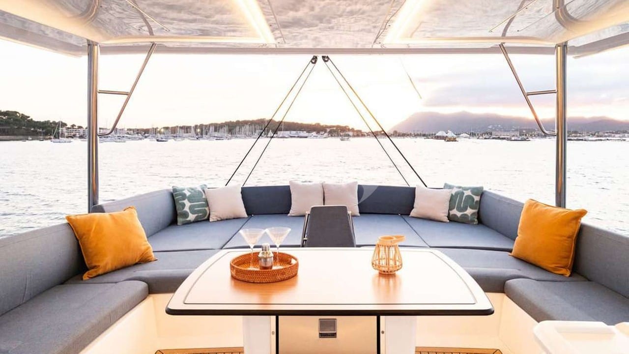 Удобства на борту для чартерных гостей включают кондиционер, барбекю, аудиосистему в помещении, телевизионный салон и Wi-Fi.