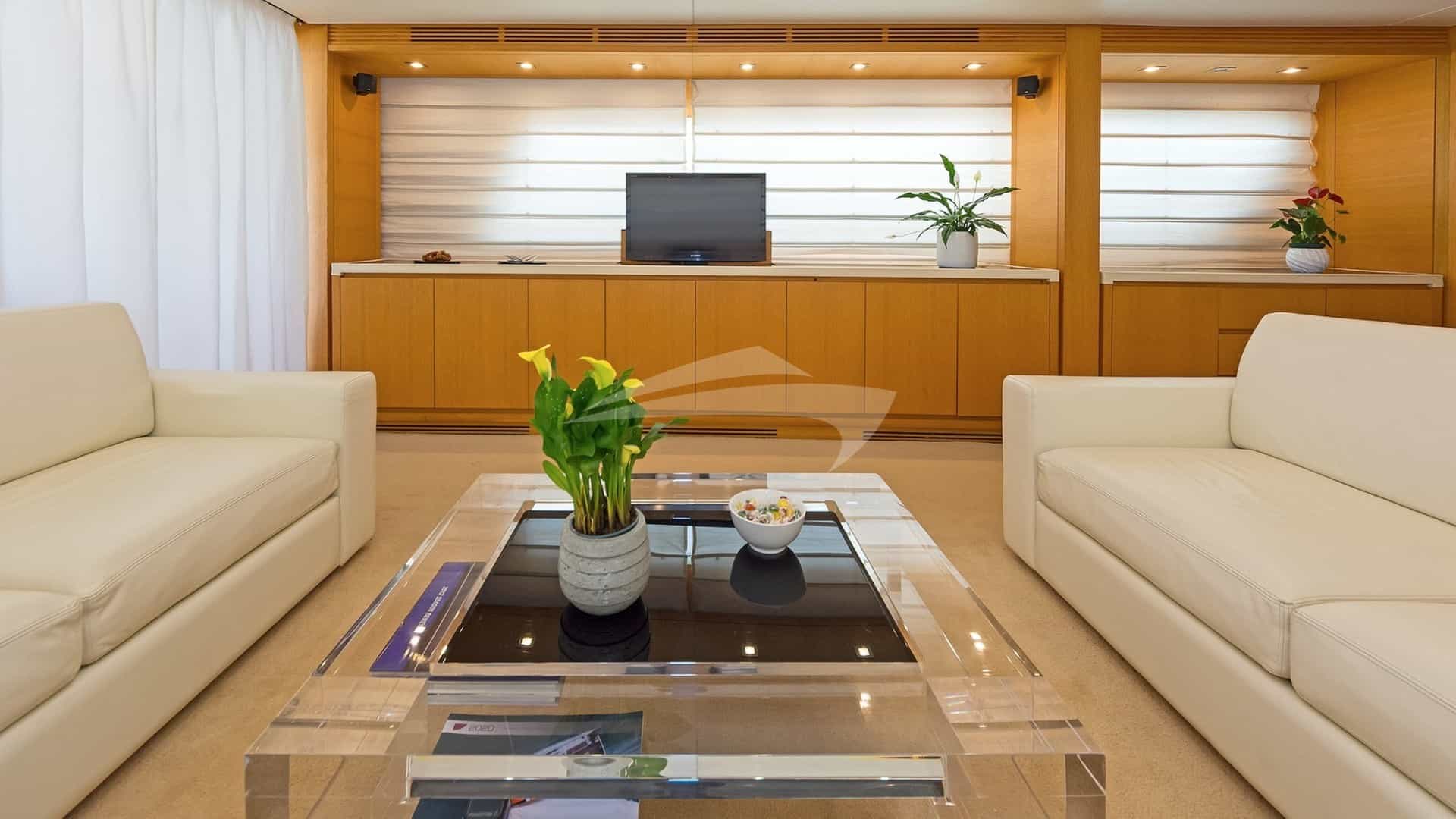 Удобства на борту для чартерных гостей включают кондиционер, носовое подруливающее устройство, кофеварку, льдогенератор, аудиосистему в помещении, спутниковую связь, спутниковое телевидение, стабилизаторы на якоре, шезлонги, платформу для купания, телевизор во всех каютах, ТВ-салон, водонагреватель и Wi-Fi.