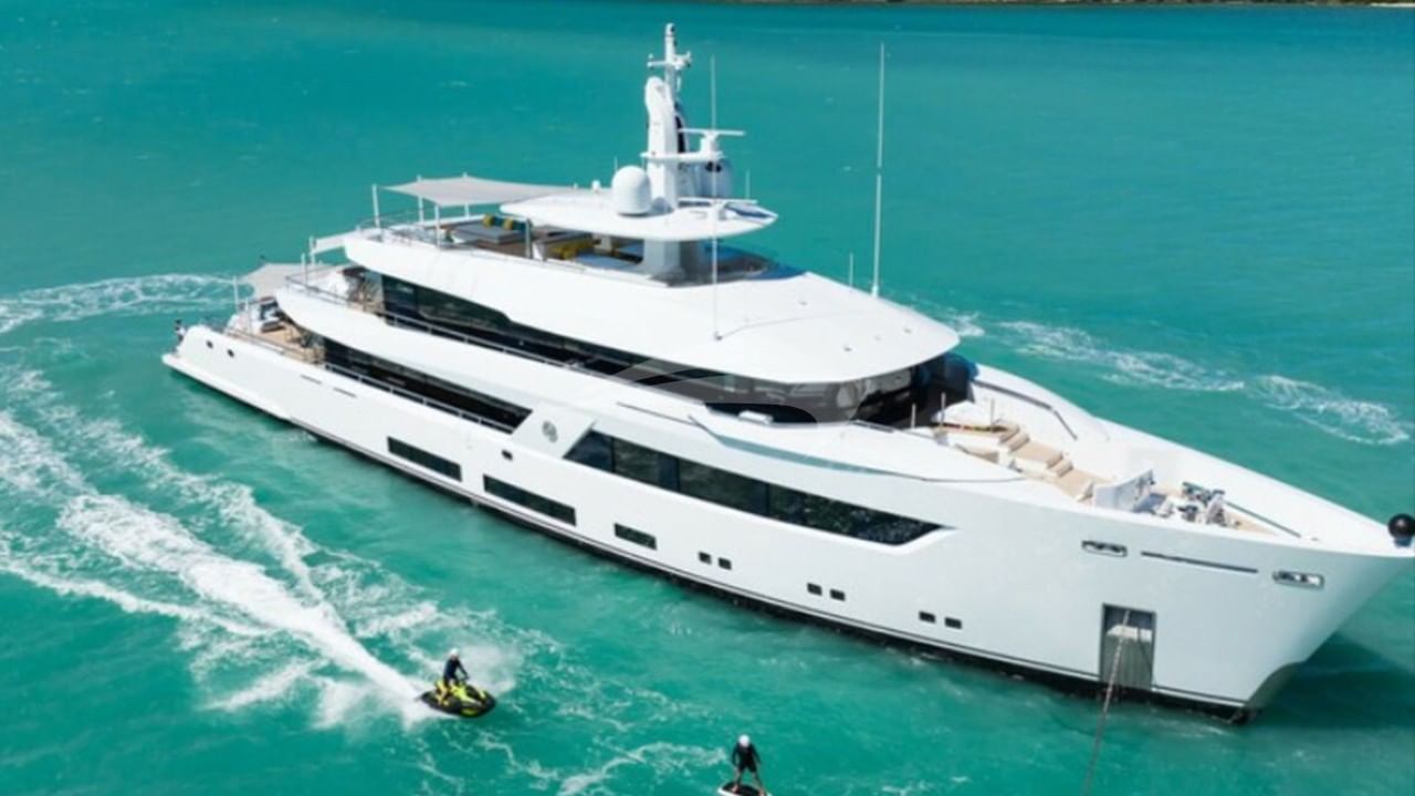 MOON SAND длиной 182 фута/55,5 м имеет алюминиевый корпус и оснащен двумя двигателями MTU с крейсерской скоростью 13 узлов и максимальной скоростью 15 узлов.