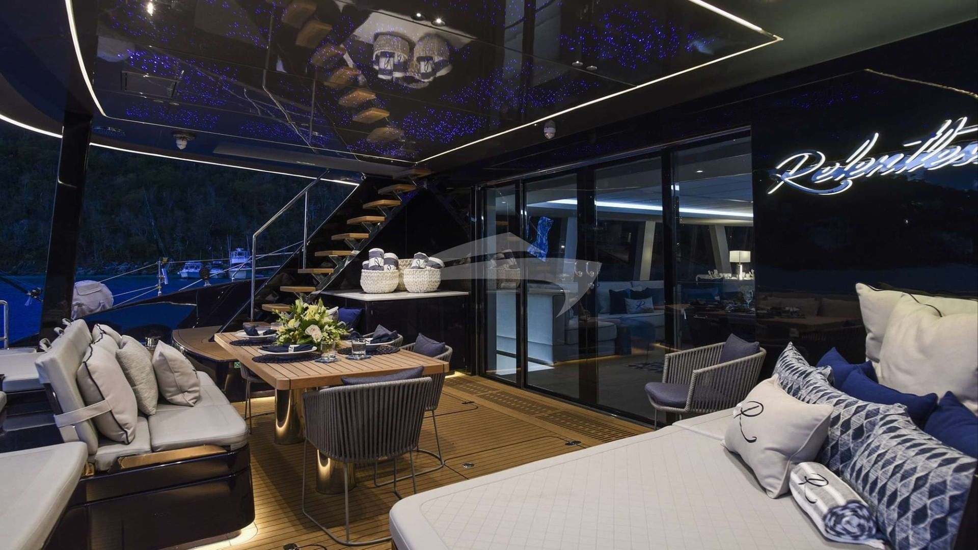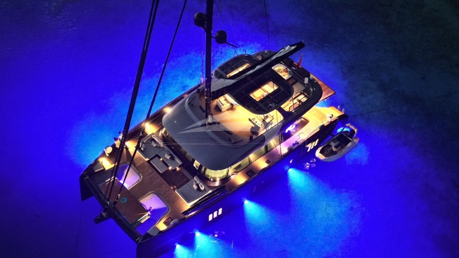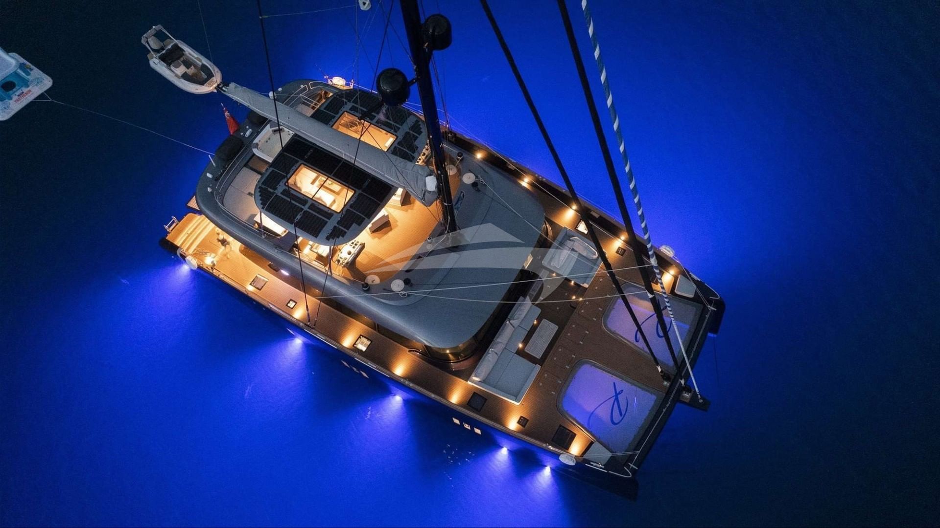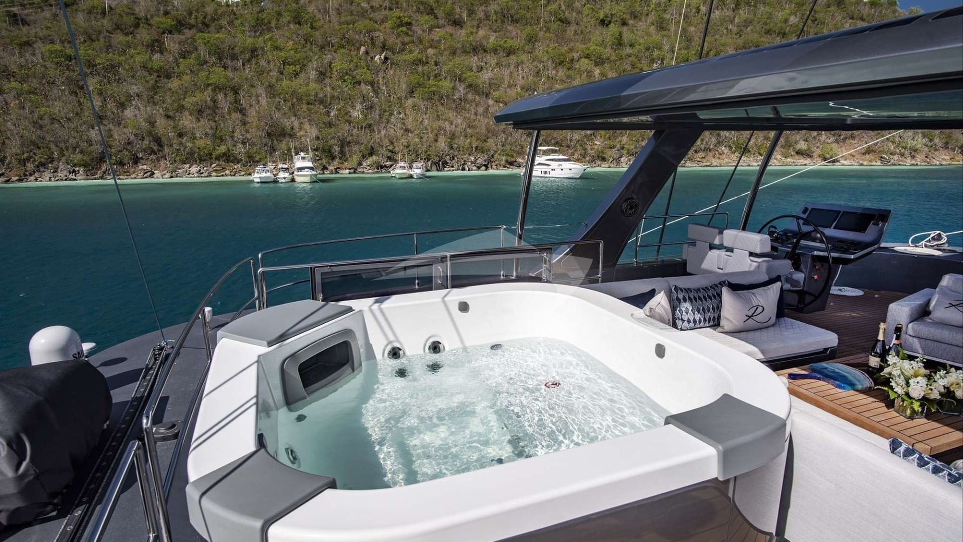 Amenities on board for the charter guests include Air Conditioning, BBQ, Outdoor shower, Indoor audio system, iPod dock, Jacuzzi on deck, TV saloon and Wi-Fi.