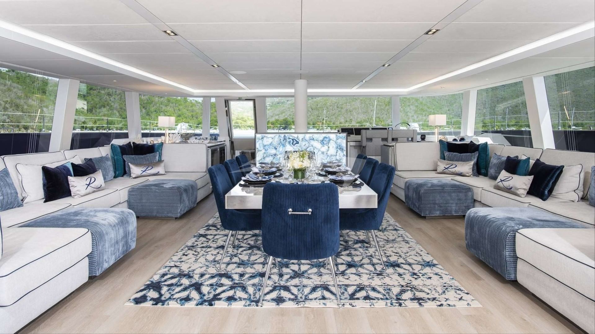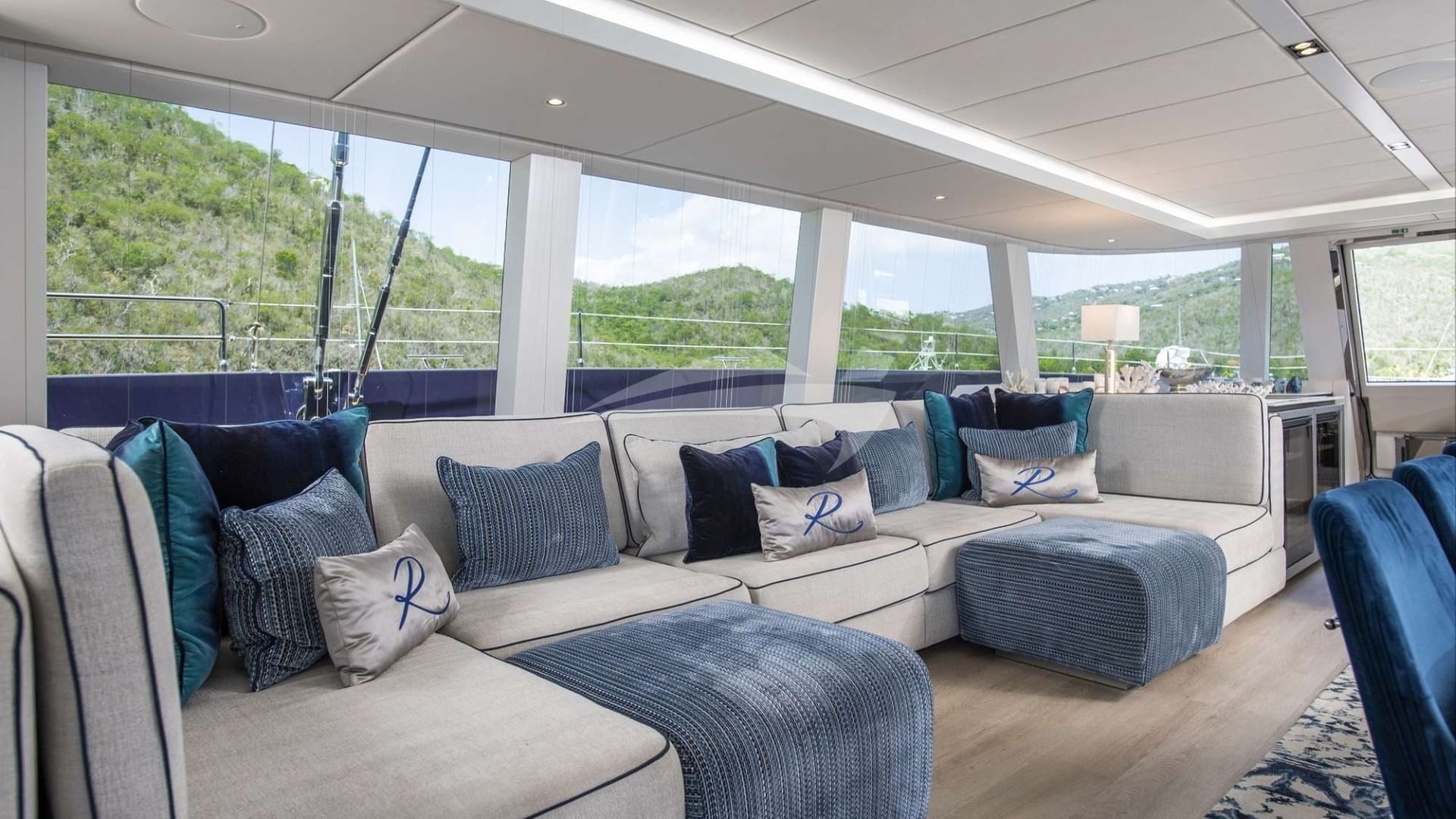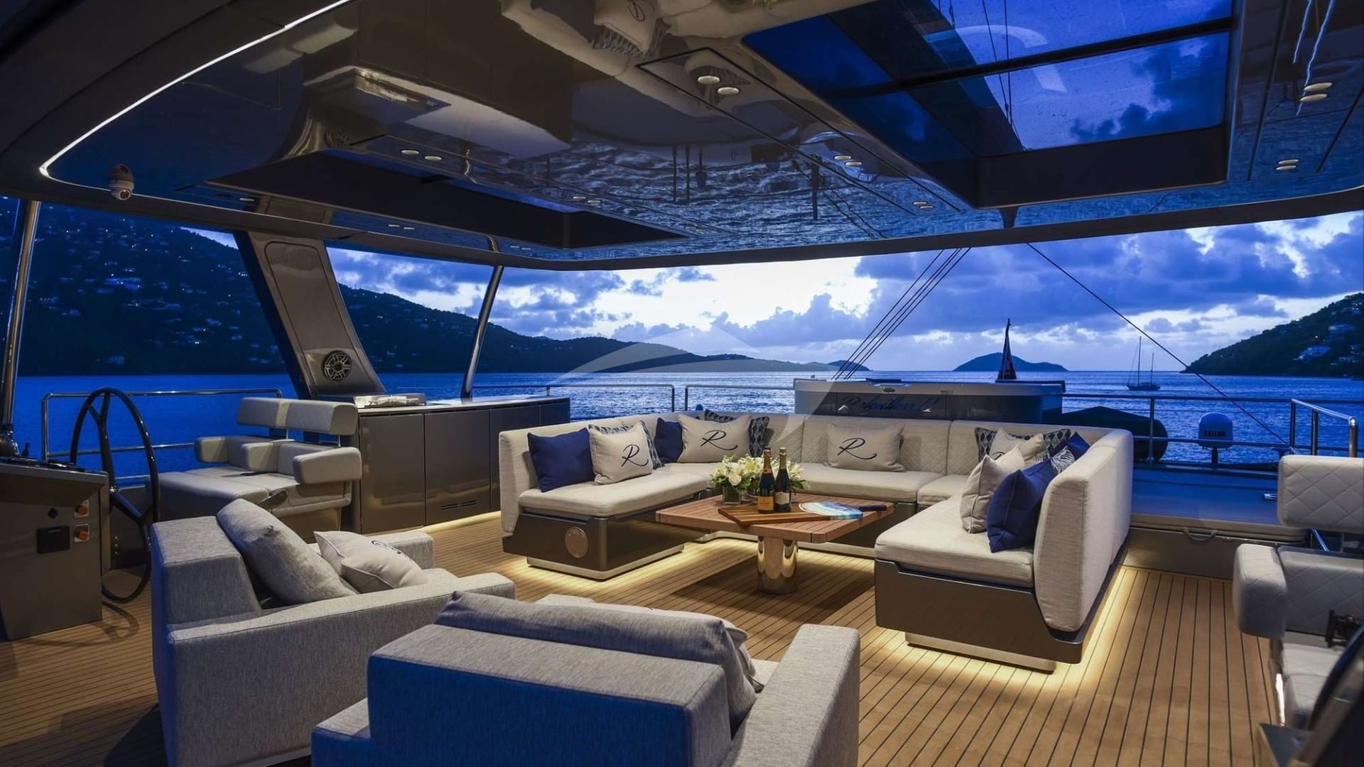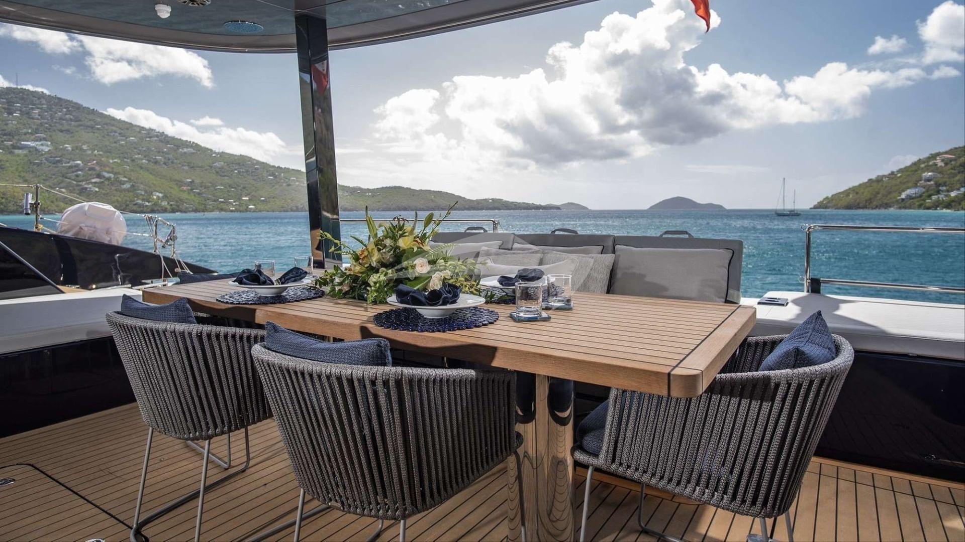 Amenities on board for the charter guests include Air Conditioning, BBQ, Outdoor shower, Indoor audio system, iPod dock, Jacuzzi on deck, TV saloon and Wi-Fi.
