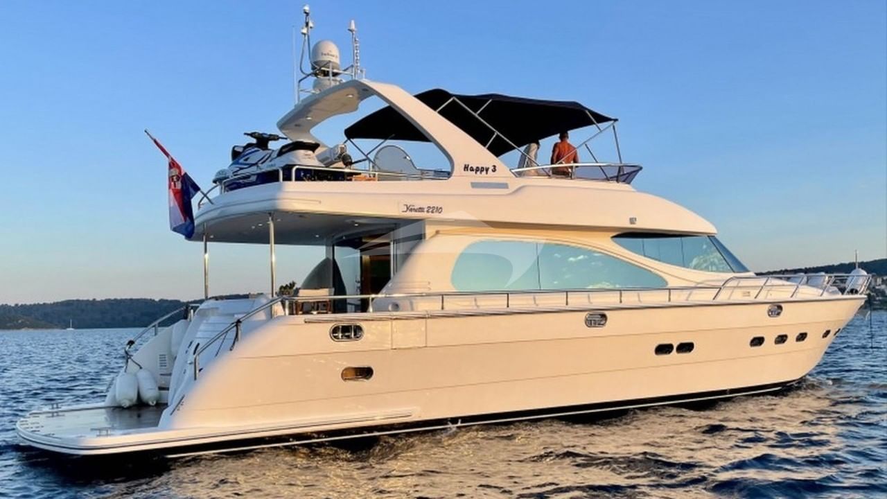 The luxury motor yacht HAPPY 3, previously named SUSAN II, was built by Yaretti and delivered to her owner in 2004, she later underwent a refit in 2021.