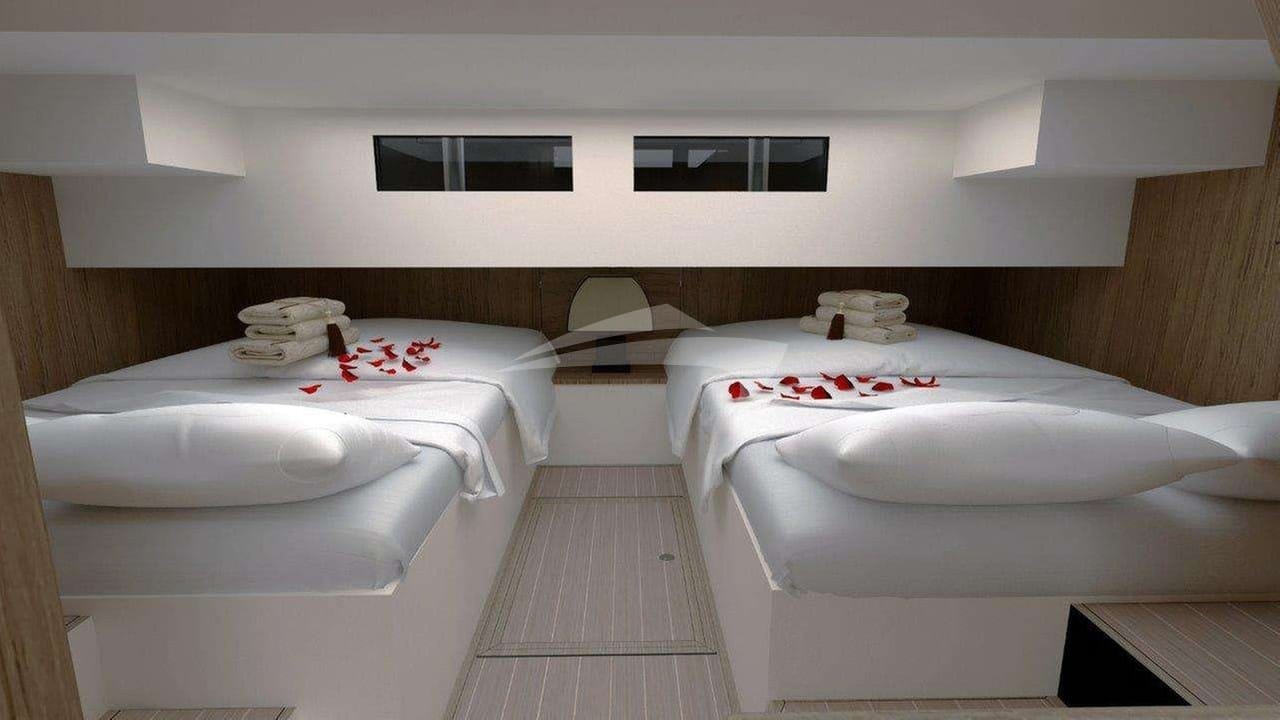 SCORPION 46 can accommodate 2 guests in 1 cabin consisting of a primary suite with a twin bed .