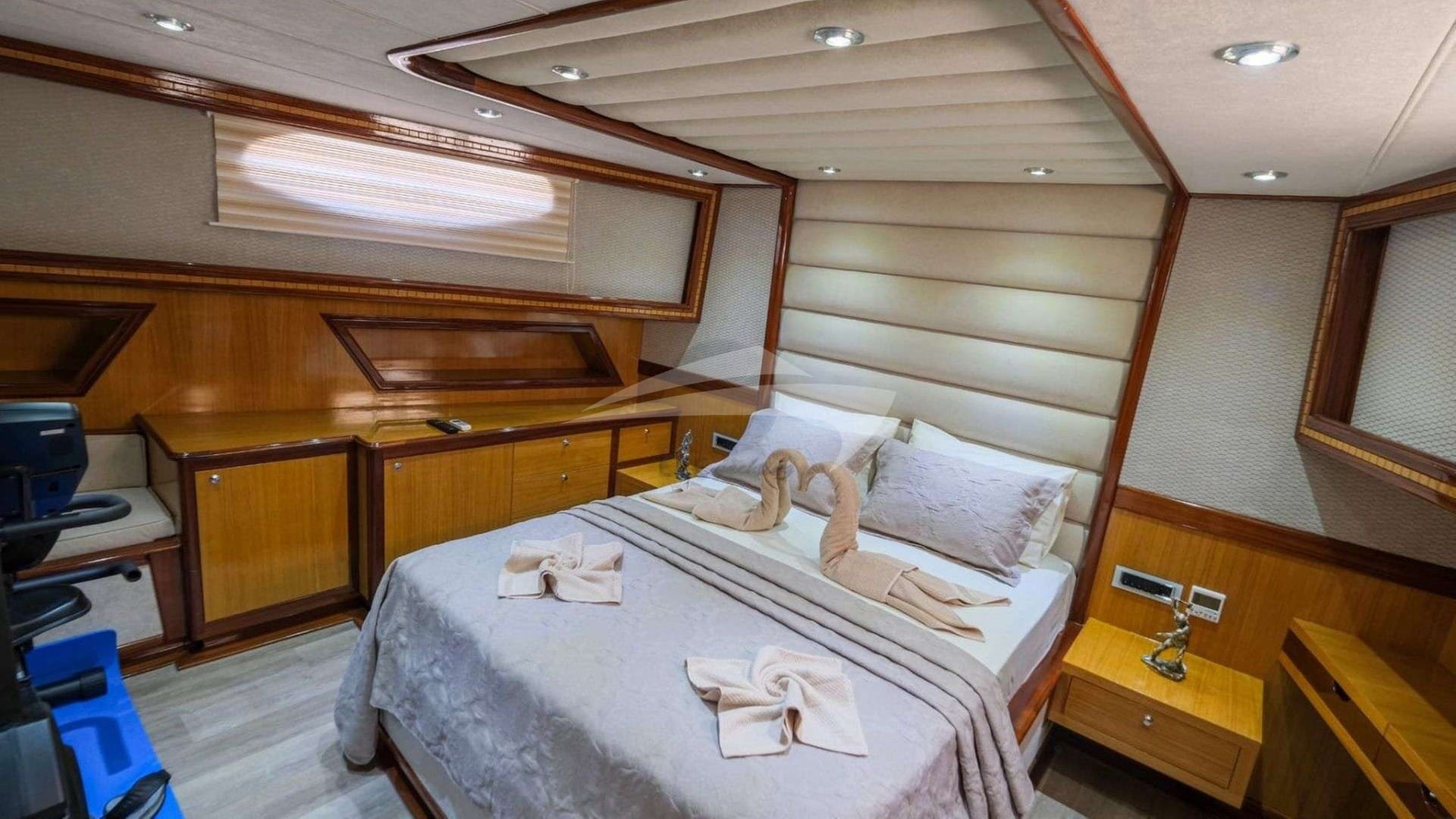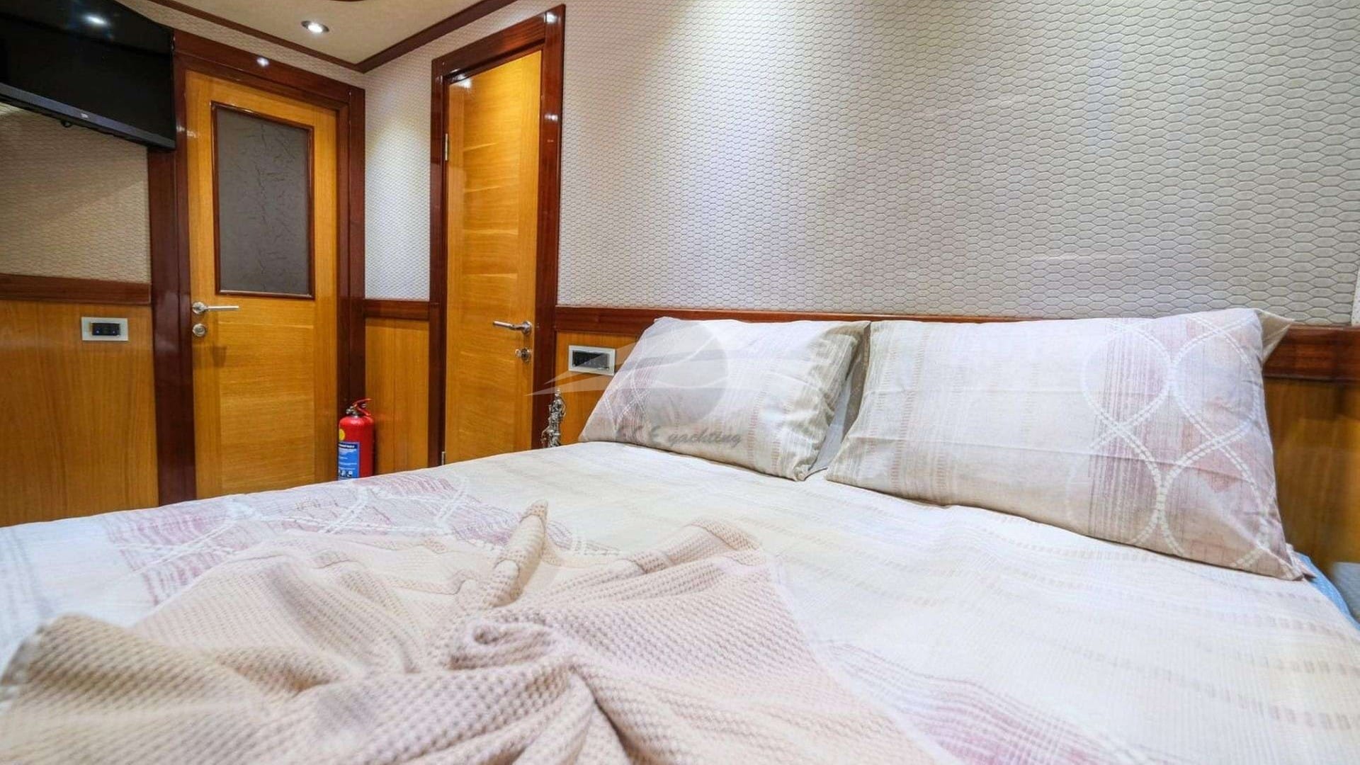 DESTINY can accommodate 8 guests in 4 cabins consisting of a primary suite with a king size bed , a cabin with a king size bed and 2 cabins with a double bed .