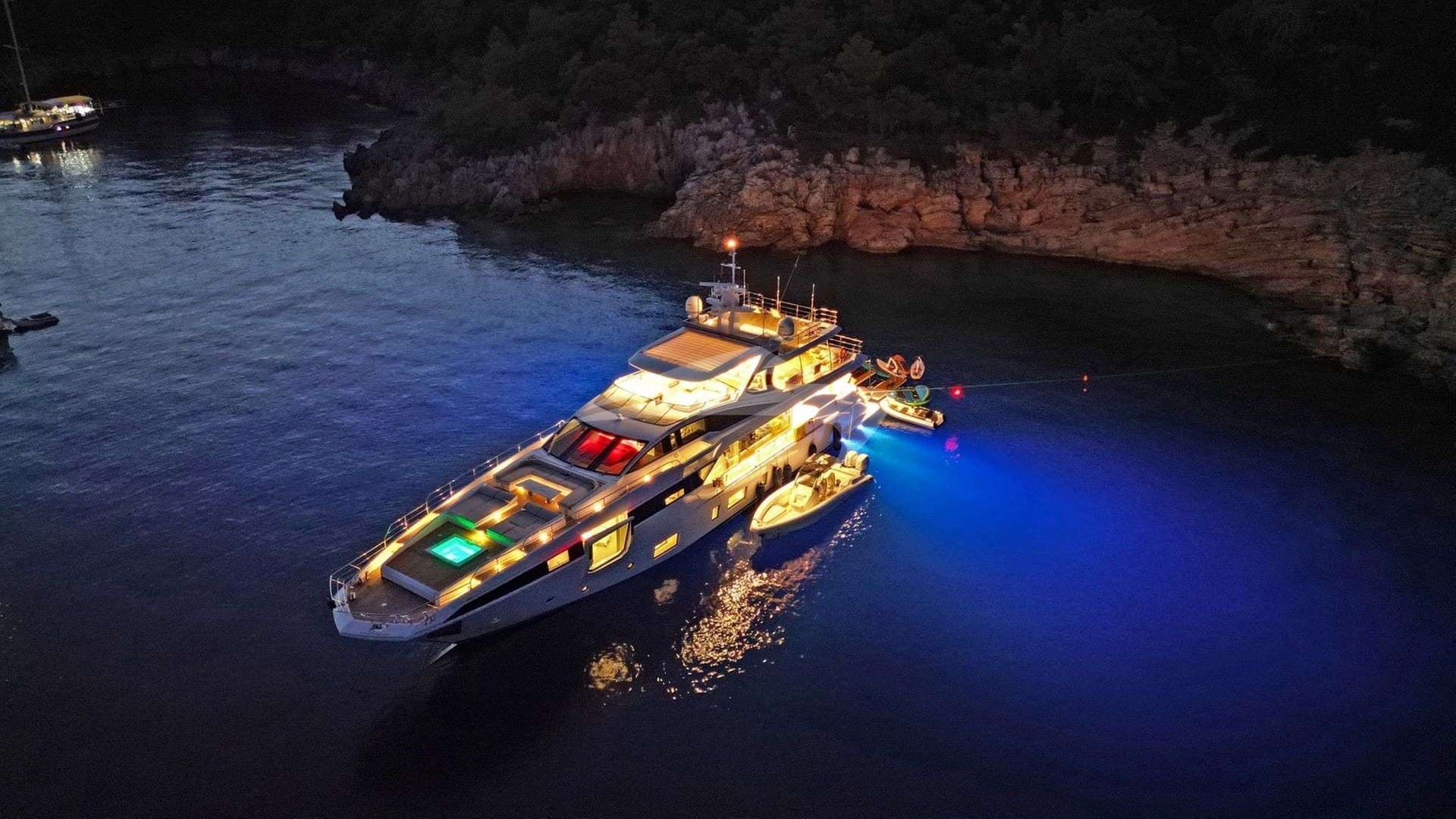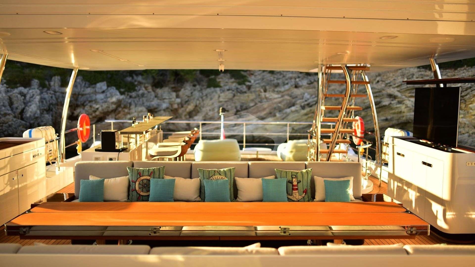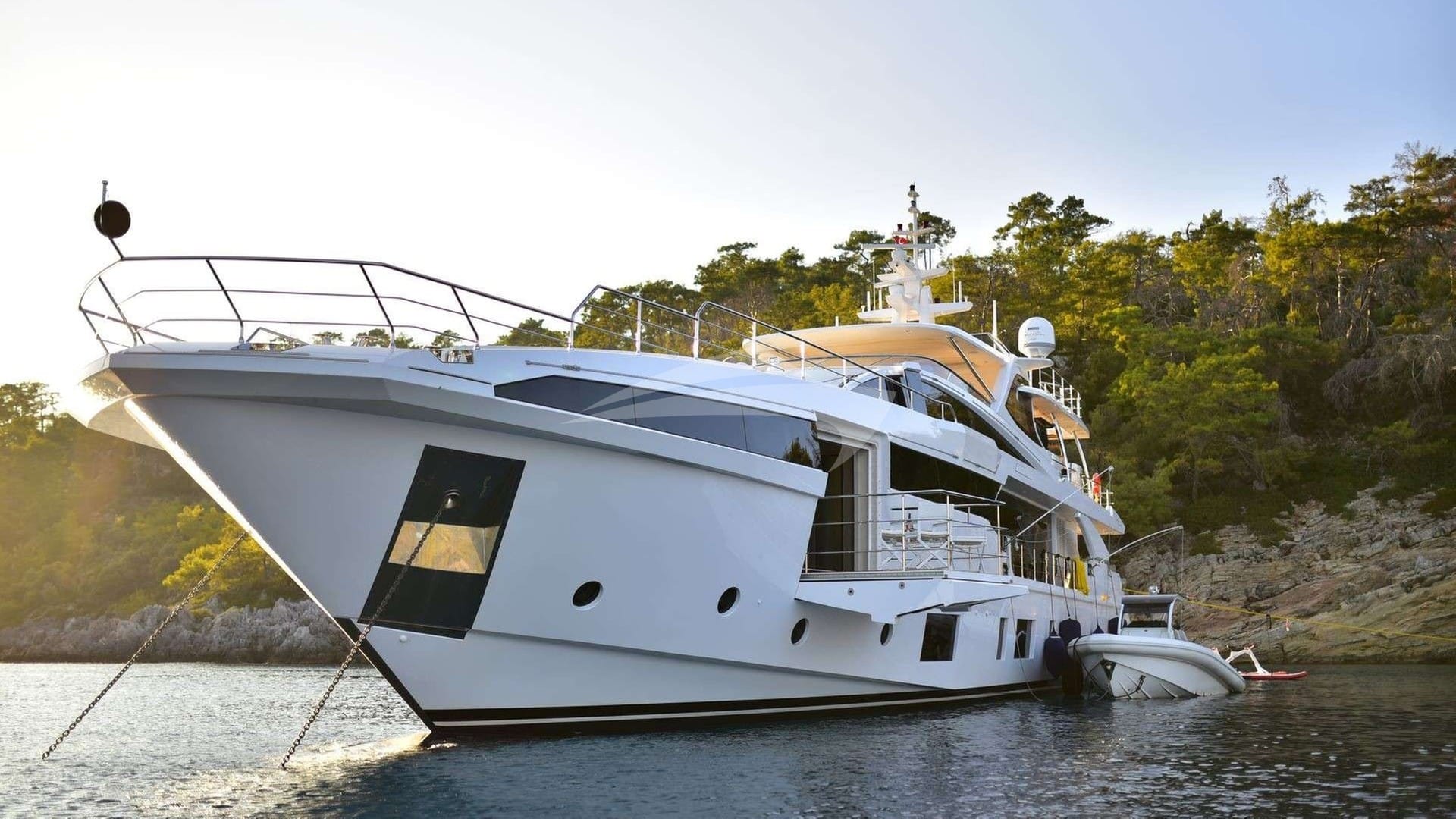 Amenities on board for the charter guests include Air Conditioning, Jacuzzi on deck, Stabilizers At Anchor and Swim platform.