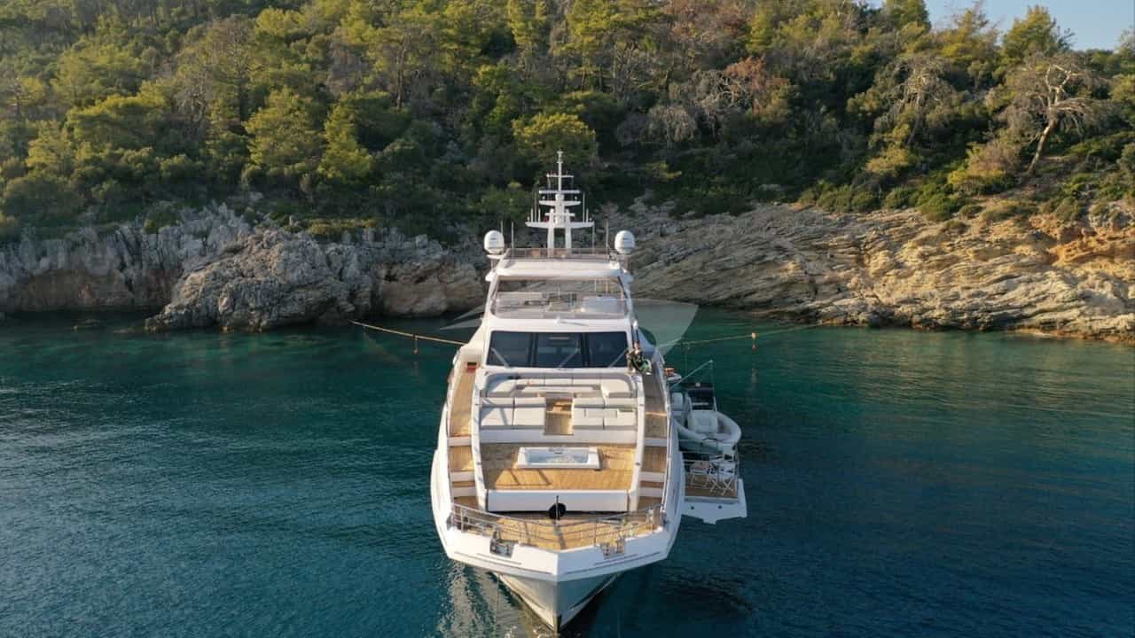 Amenities on board for the charter guests include Air Conditioning, Gym Equipment, Jacuzzi on deck, Stabilizers At Anchor and Swim platform.