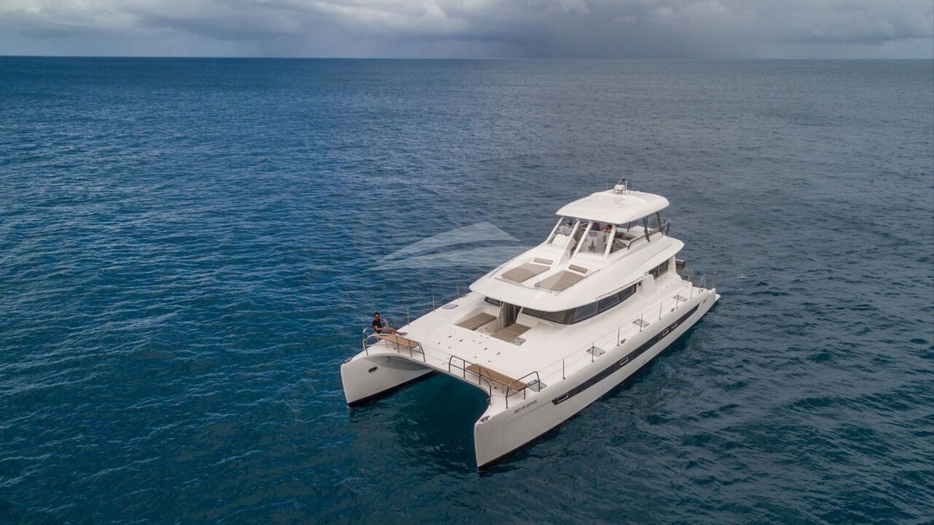 The exterior of OUT OF OFFICE is designed by Blue Ocean Catamarans.