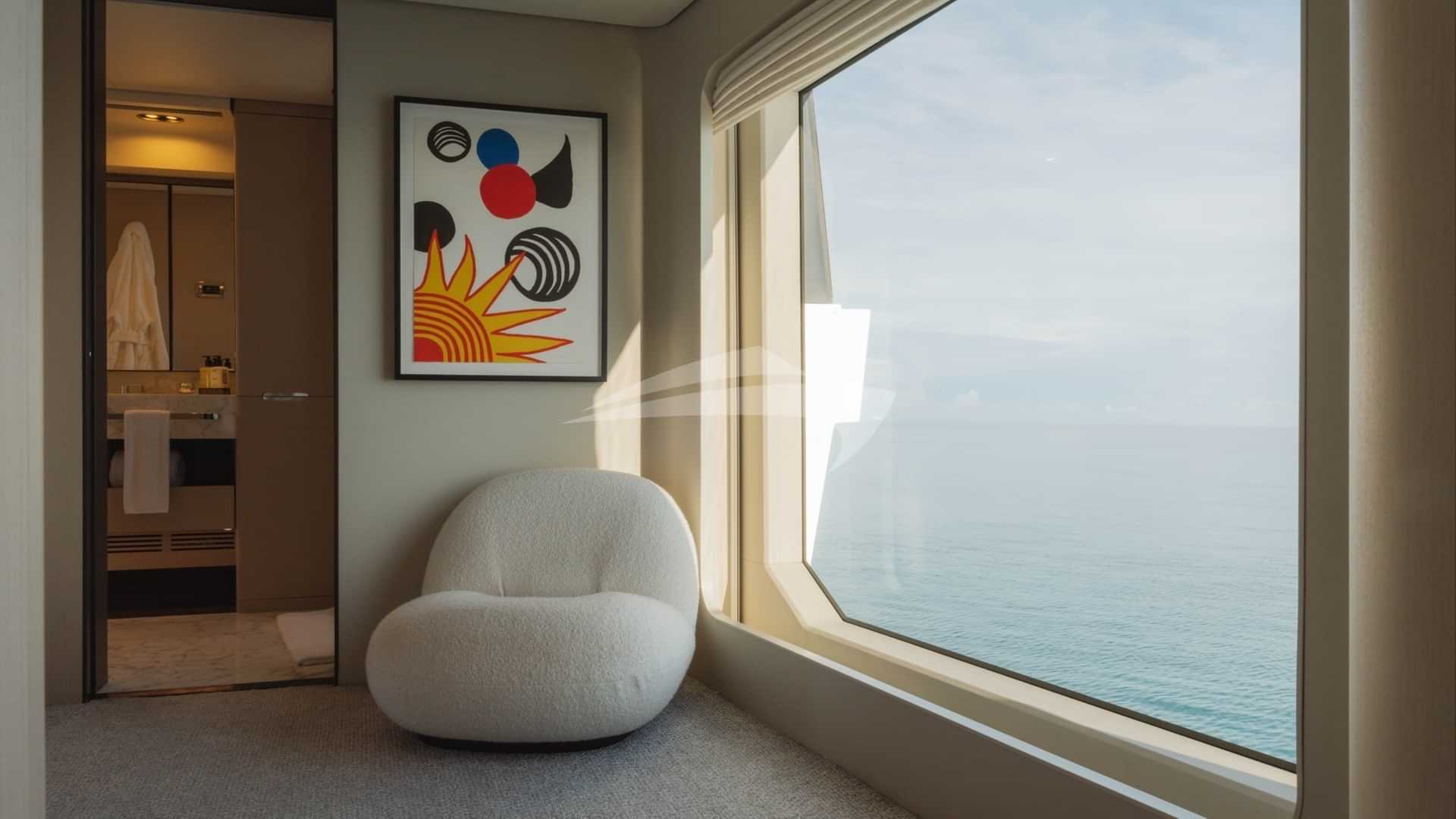 The guest cabins comprise a primary suite with a king size bed and en-suite bathroom facilities, 3 VIP suites with a king size bed and en-suite bathroom facilities and a cabin with a twin bed and a pullman bed and en-suite bathroom facilities.