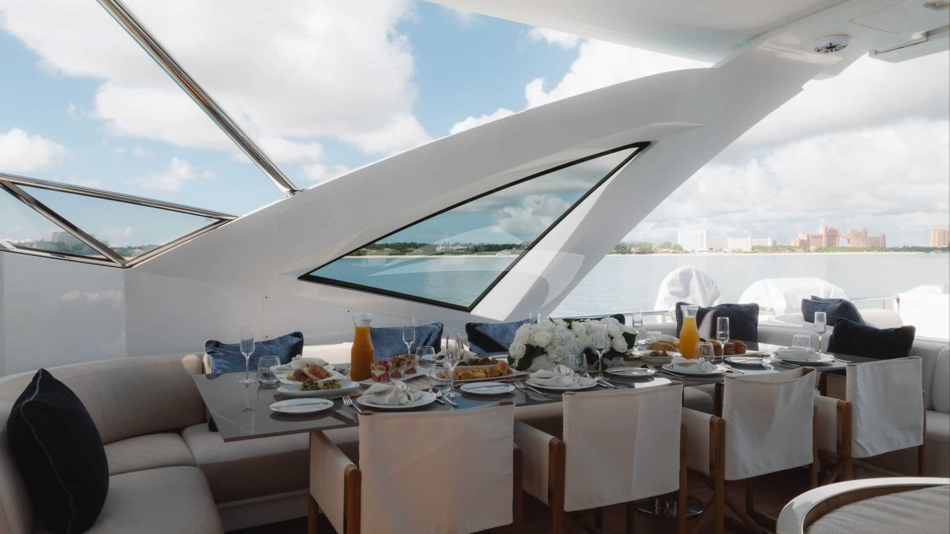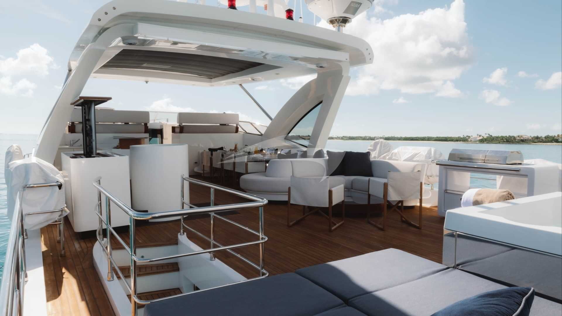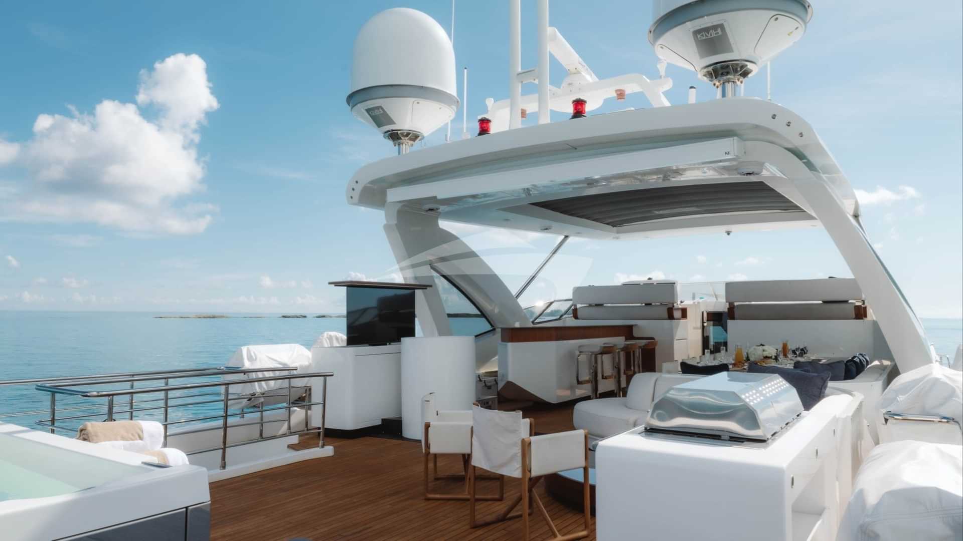 Amenities on board for the charter guests include Air Conditioning, Beach club, Light fishing gear, Gym, Jacuzzi on deck, Stabilizers and Wi-Fi.