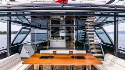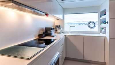 Amenities on board for the charter guests include Air Conditioning, BBQ, Beach club, Coffee machine, Jacuzzi on deck and Wi-Fi.