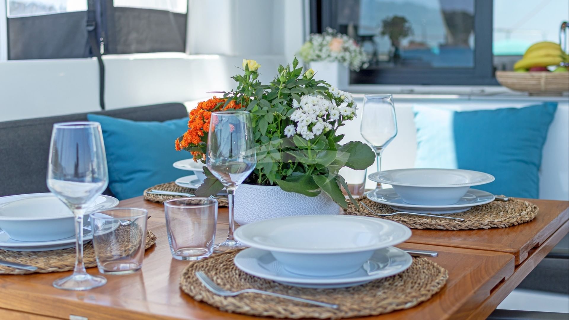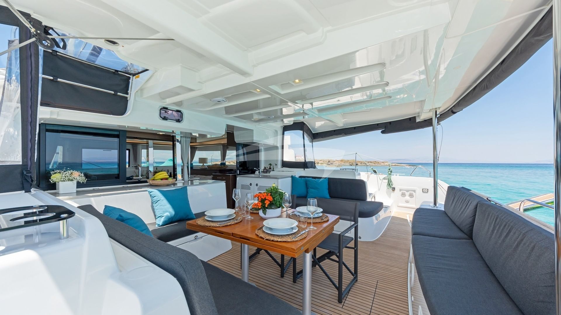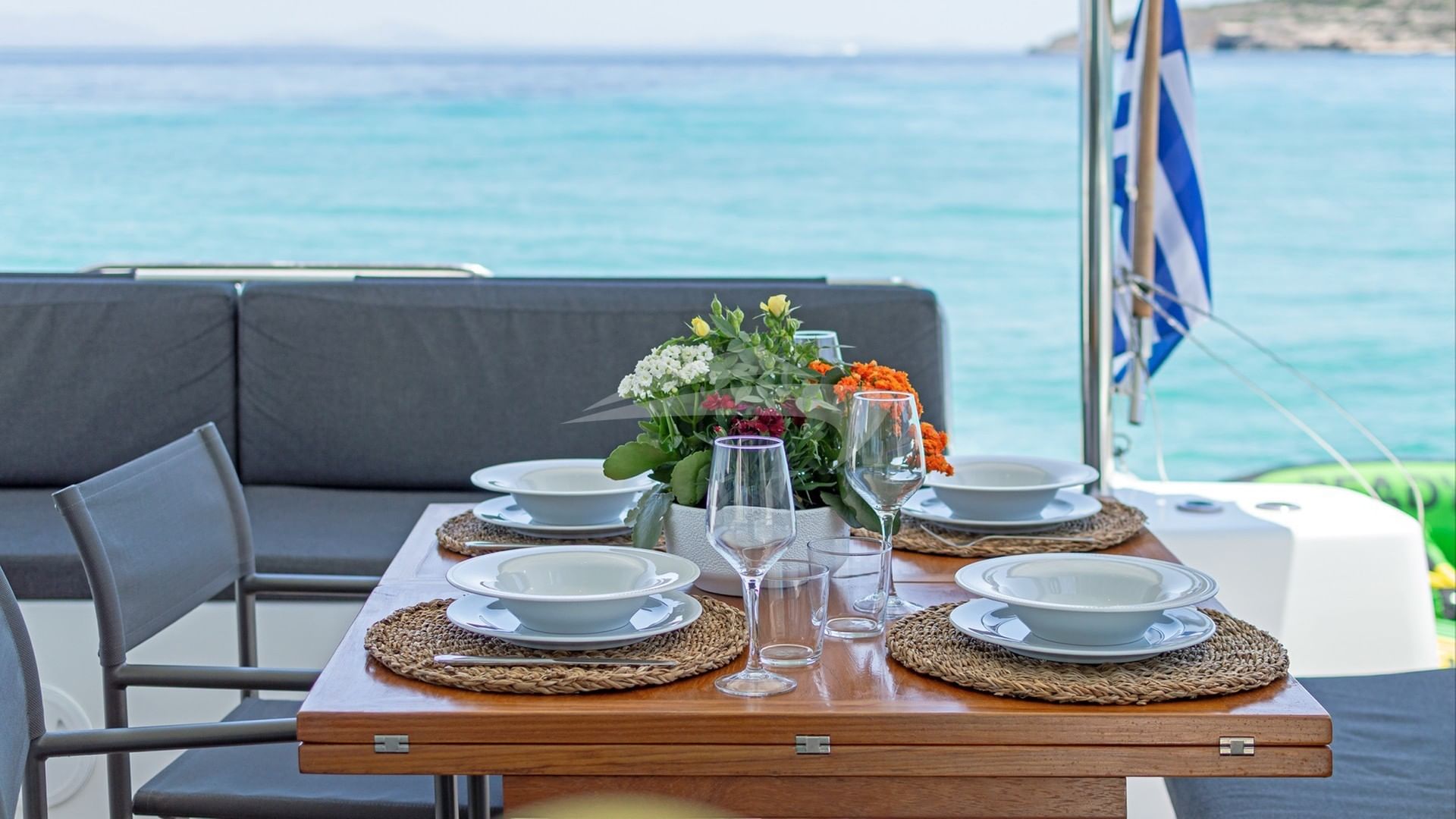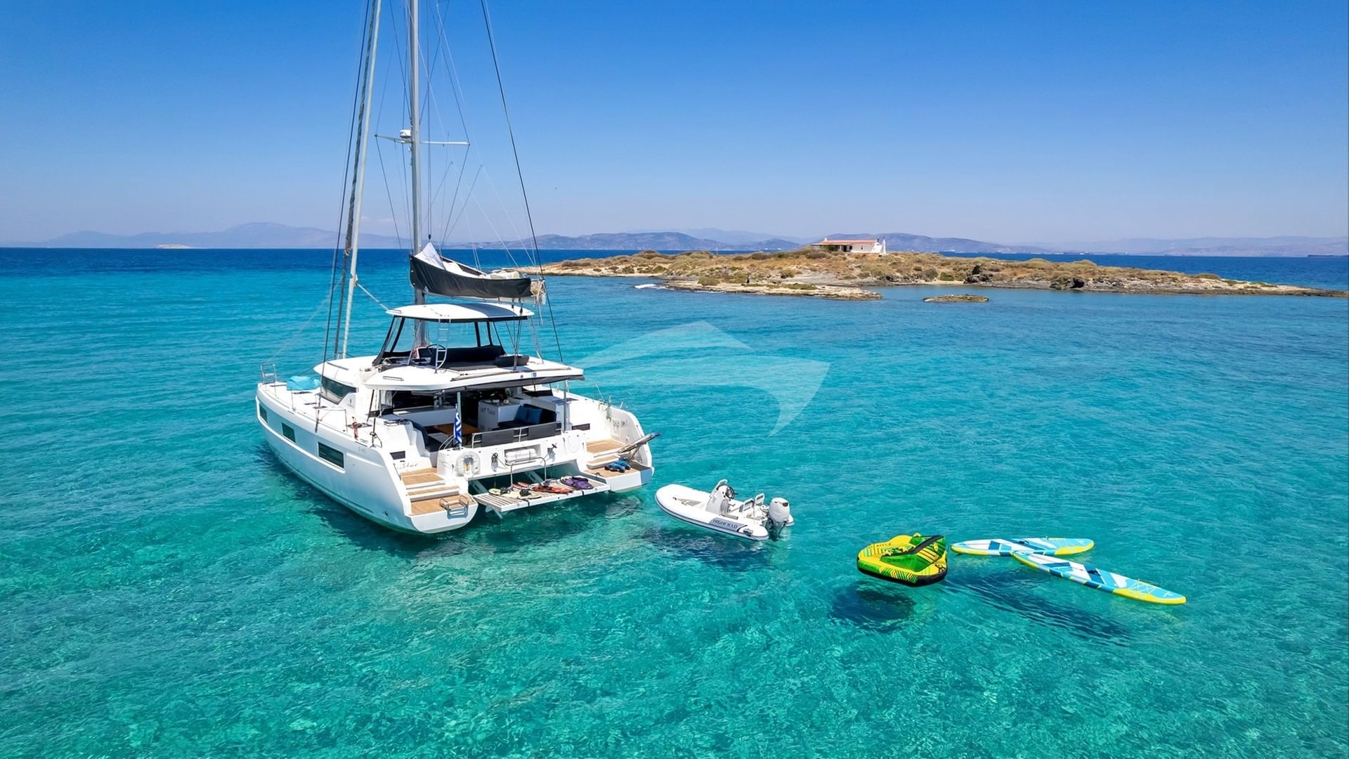 Amenities on board for the charter guests include Air Conditioning, Coffee machine, Ice maker, Sun Deck, TV saloon, Water maker and Wi-Fi.