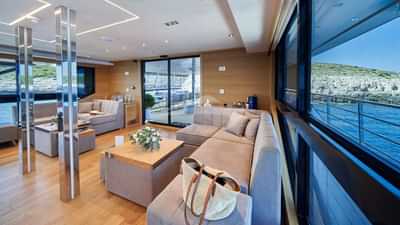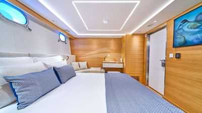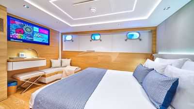 Amenities on board for the charter guests include Air Conditioning, Jacuzzi on deck, TV saloon and Wi-Fi.