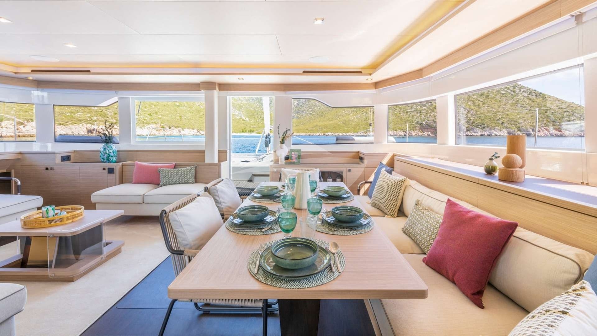 Amenities on board for the charter guests include Air Conditioning, Outdoor shower, Indoor audio system, TV saloon and Wi-Fi.