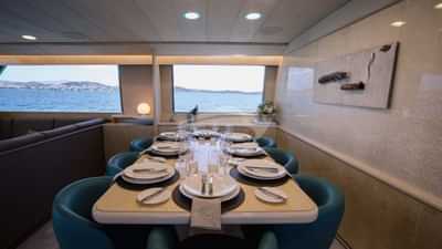 Amenities on board for the charter guests include Air Conditioning, Indoor audio system, Swim platform, TV saloon and Wi-Fi.